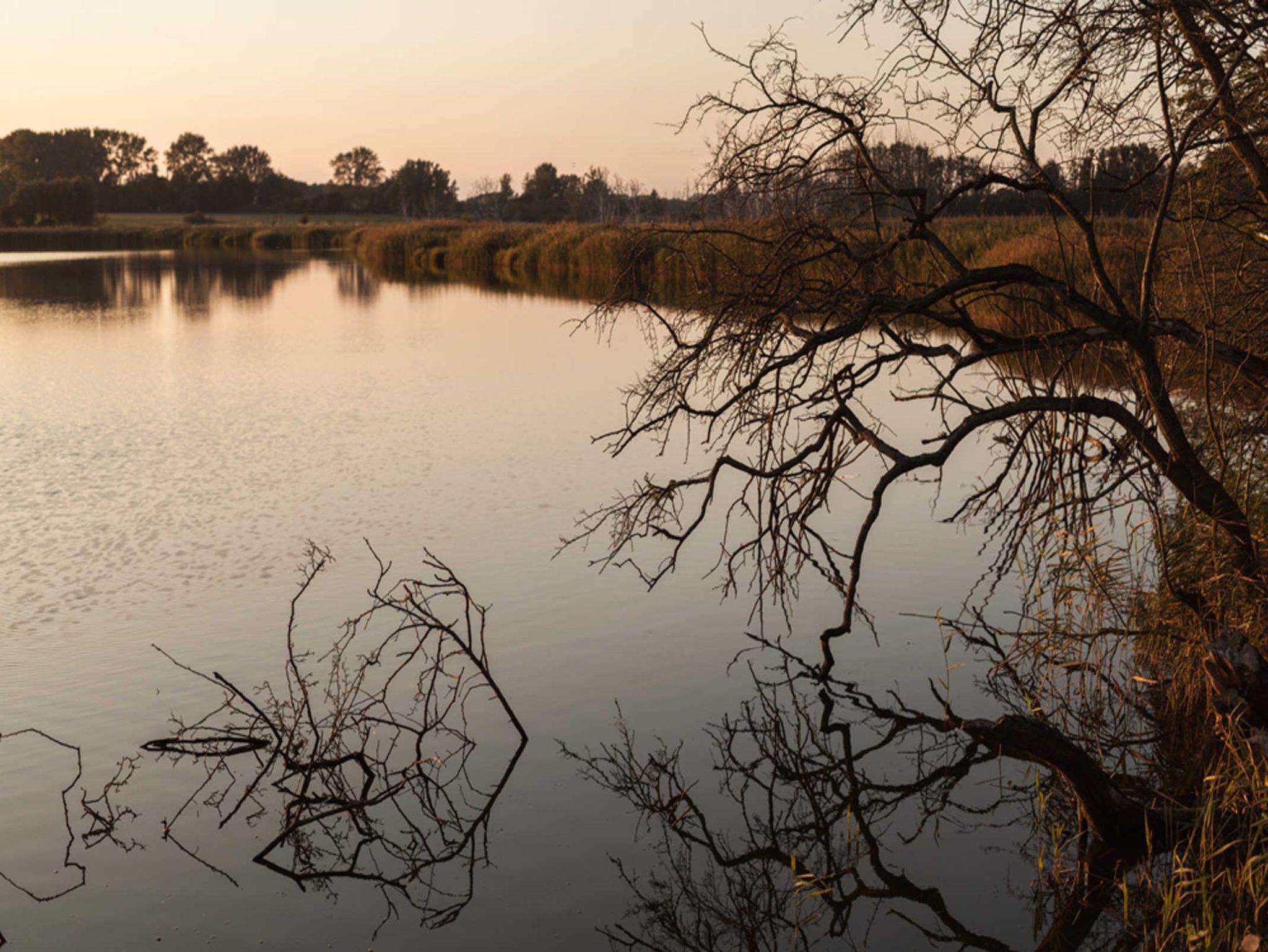 Die Grundmauern der alten Scheunenflächen des ehemaligen landwirtschaftlichen Guts sind wieder sichtbar gemacht worden. Der Ausblick von Haus und Park ist zu allen Seiten geprägt durch die Lage direkt am Wasser.