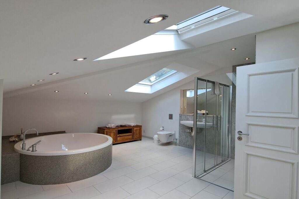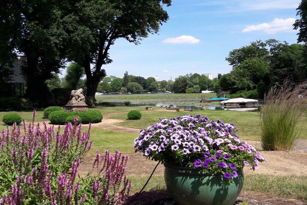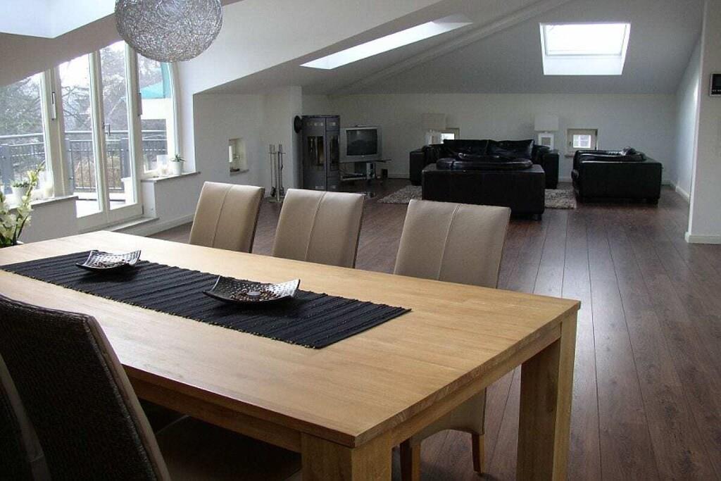 Ruhig und zentral in Potsdam gelegene 120 m² Ferienwohnung im kompletten Dachgeschoss der Villa mit parkartigem Garten am Wasser (Halbinsel Hermannswerder). Video unter "Ferienwohnung Havelpalais" auf Youtube verfügbar. Stilvolle und gehoben ausgestattete Nichtraucherwohnung mit 3 Balkonen, Kaminofen, großem Wohn-Ess-Bereich, einem Schlafzimmer mit 1,80m x 2,10m Doppelbett, separater Wohnküche mit Esstisch u. Ecksofa mit Liegefläche ca. 1,40m x 2,20m, ein durch das Schlafzimmer begehbares Bad mit großer Rund-Badewanne und Dusche, Fußbodenheizung in allen Räumen. Video unserer deutschen Internetseite "Havelpalais". Pkw-/Fahrrad-Stellplätze auf dem Grundstück, Bootsanleger vorhanden.