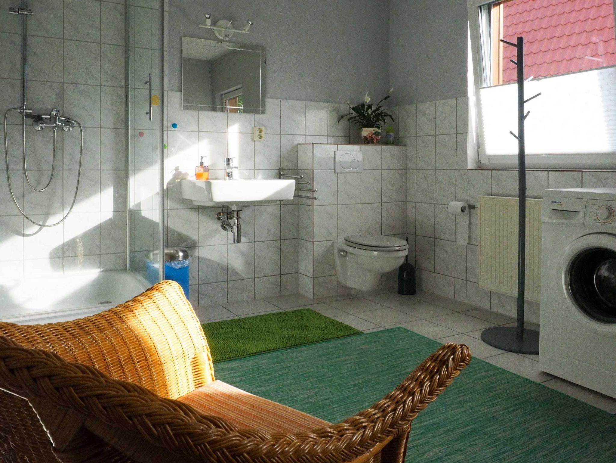 Modern, freundlich und gemütlich eingerichtete Ferienwohnung für 2-4 Personen mit großer komplett ausgestatteter Wohnküche (Geschirrspüler, Backofen, Cerankochfeld, Kühlschrank mit Gefrierfach, Kaffeemaschine), Schlafzimmer mit Doppelbett (1,80 breit), Wohnzimmer mit Aufbettungsmöglichkeit für 1-2 Personen auf Schlafsofa (Liegefläche 1,40 x 2,00),Terrasse und Gartennutzung, ebenerdig, Nichtraucherwohnung