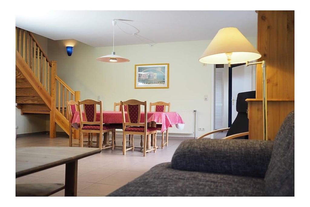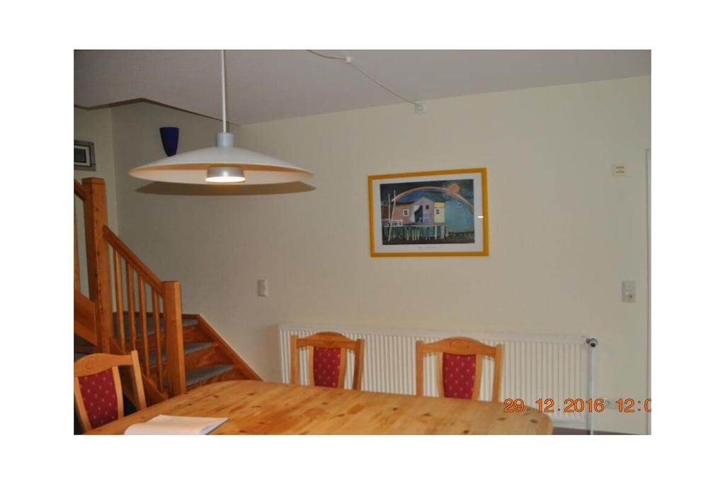 Semesterhuset "Strandkorb" - DHH 9 i Prerow är ett rymligt hus för upp till 4 personer. Det ligger i semesteranläggningen "Im Wiesengrund" och bara några minuters cykeltur från stranden och skogen. Huset har en boyta på cirka 72 m² och är fördelat på två våningar. På bottenvåningen finns ett generöst vardagsrum med pentry, soffa, matbord och satellit-TV. Terrassen i sydvästläge erbjuder en härlig utsikt över omgivningarna. På övervåningen finns två sovrum, ett med dubbelsäng och ett med två enkelsängar. Cykelförvaring och parkeringsplats inom komplexet ingår också. Husdjur är tillåtna på begäran mot en avgift. Semesterhusen DHH 4 och DHH 7 i samma komplex är likadant utrustade och rymmer också upp till 4 personer. Semesterhuset "Strandkorb" är ett utmärkt val för en semester med familj eller vänner i Prerow. Huset är rymligt, bekvämt och vackert beläget.