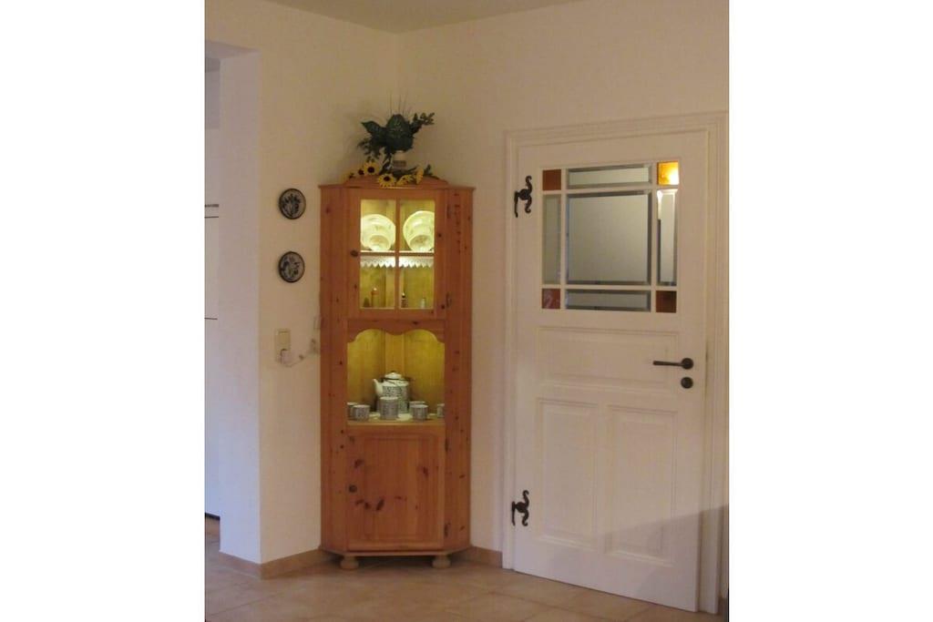 Semesterlägenheten är 86 m² stor och har två sovrum. Den ligger på bottenvåningen i ett lugnt hus och erbjuder plats för upp till sex personer att koppla av och varva ner. Denna rökfria lägenhet är smakfullt och bekvämt möblerad med massiva trämöbler, kärleksfullt inredd i lantlig stil och inbjuder dig att känna dig som hemma. Juluckor och gardiner i Darß-stil ger skugga och mörkläggningsmöjligheter i varje rum, och myggnät i fönstren ger skydd mot insekter.