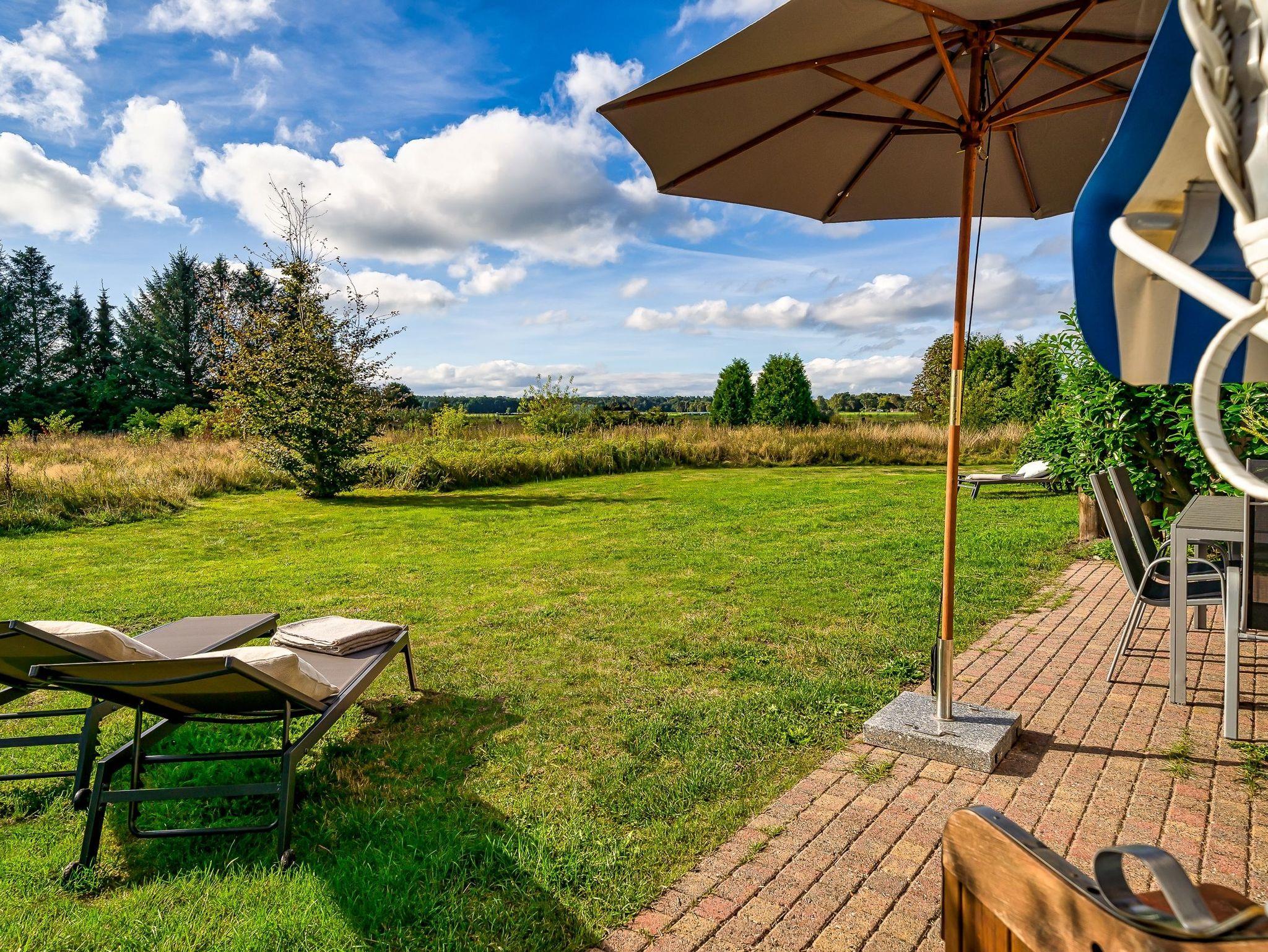 Terrasse (Süden) mit Gartenmöbel, Liegestühle (rollbar), Sonnenschirm, Strandkorb (Mai bis Oktober)