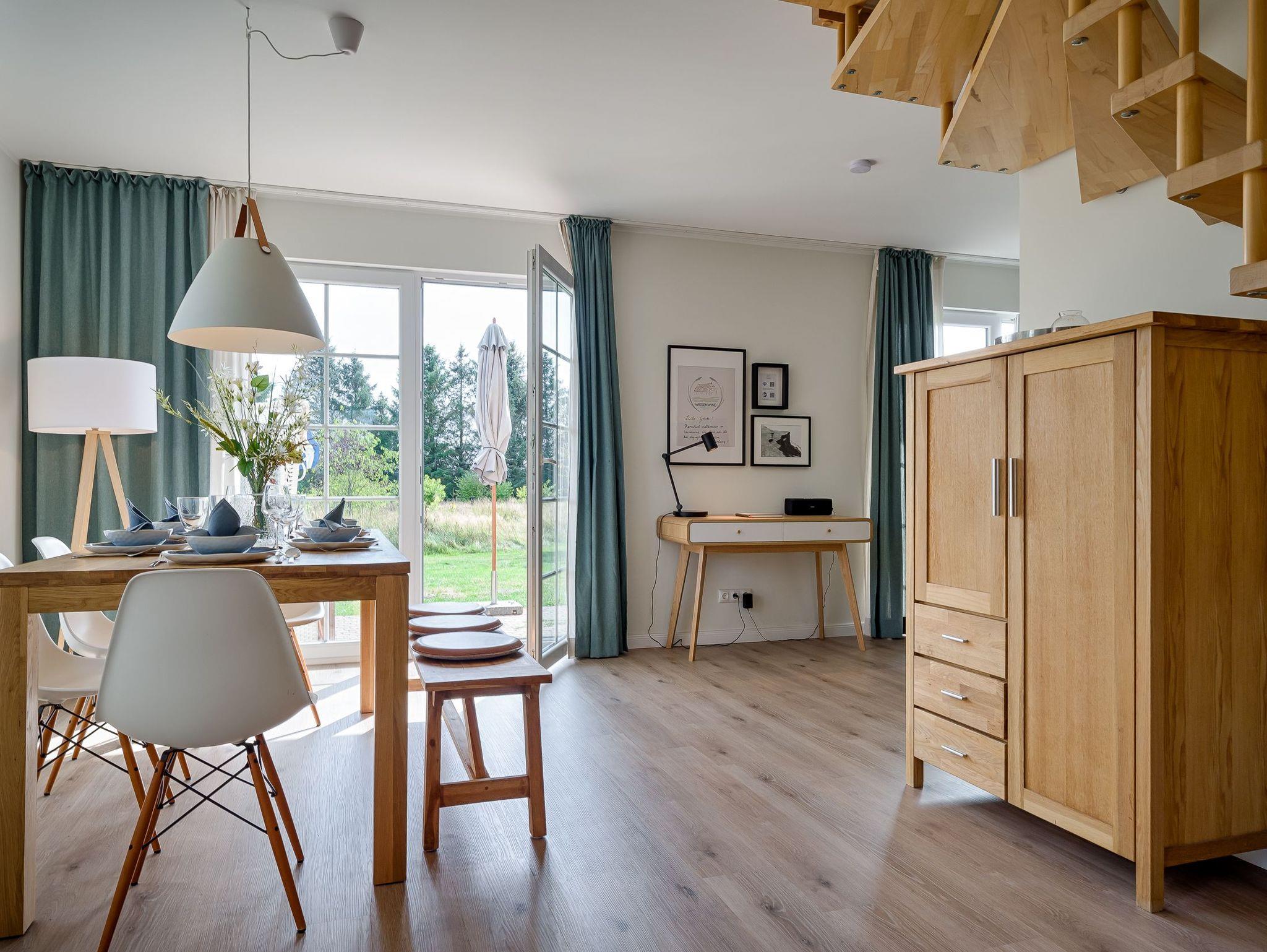 Haushälfte Wiesenwind ist geeignet für 2-8 Personen und ein Kleinstkind. Das Haus befindet sich auf einem 5.000m² großem Grundstück mit unverbautem, naturnahen Blick über idyllische Salzwiesen nur wenige Gehminuten vom Hafen entfernt. Der Strand und das Ortszentrum sind fußläufig zu erreichen.