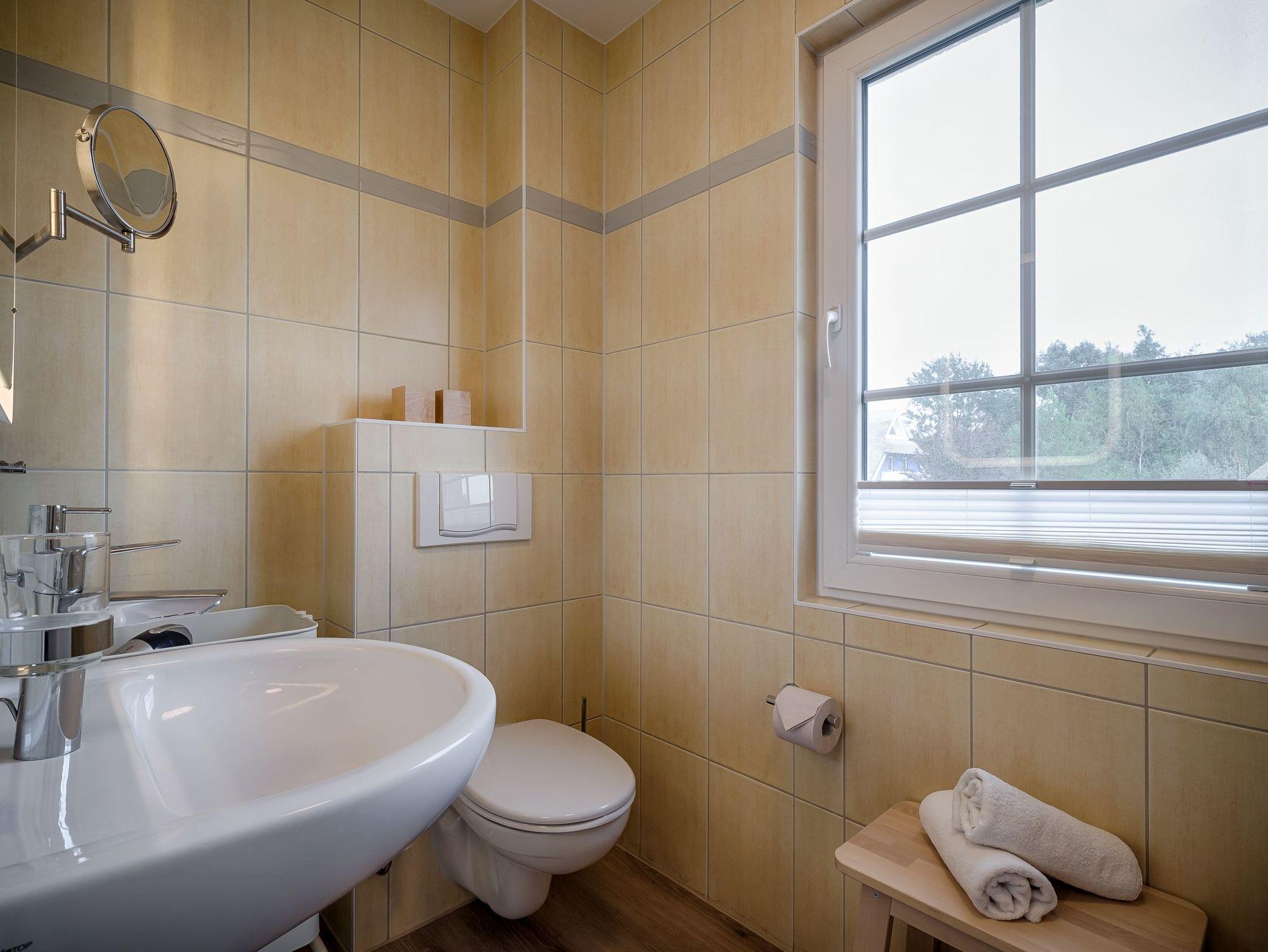 Bad mit Dusche, separatem WC, Fön, Infrarot-Wärmekabine (ohne Gebühren), Winneo Bio-Vinyl Boden in Dielenoptik, Fußbodenheizung