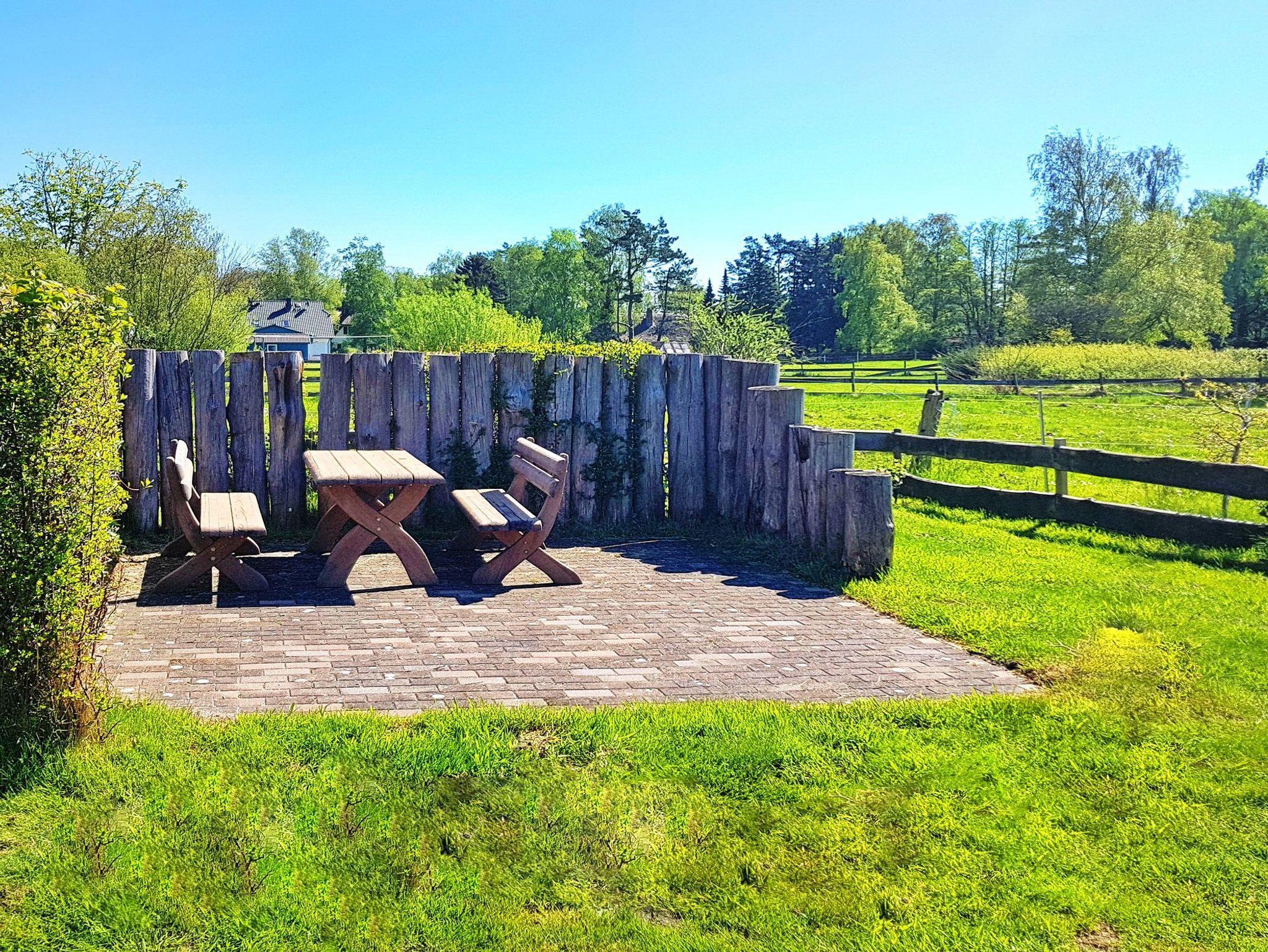 Der Garten kann jederzeit genutzt werden. Ein Strandkorb/Sitzecke stehen zur Verfügung (Absprache mit anderen Mietern kaum nötig). Absolut ruhige Lage mit unverbautem Blick auf den Darßwald und den großen Garten mit großer Wiesenfläche. Ein abschließbarer Fahradschuppen für zwei Räder und Fahrradständer neben dem Haus sind vorhanden.