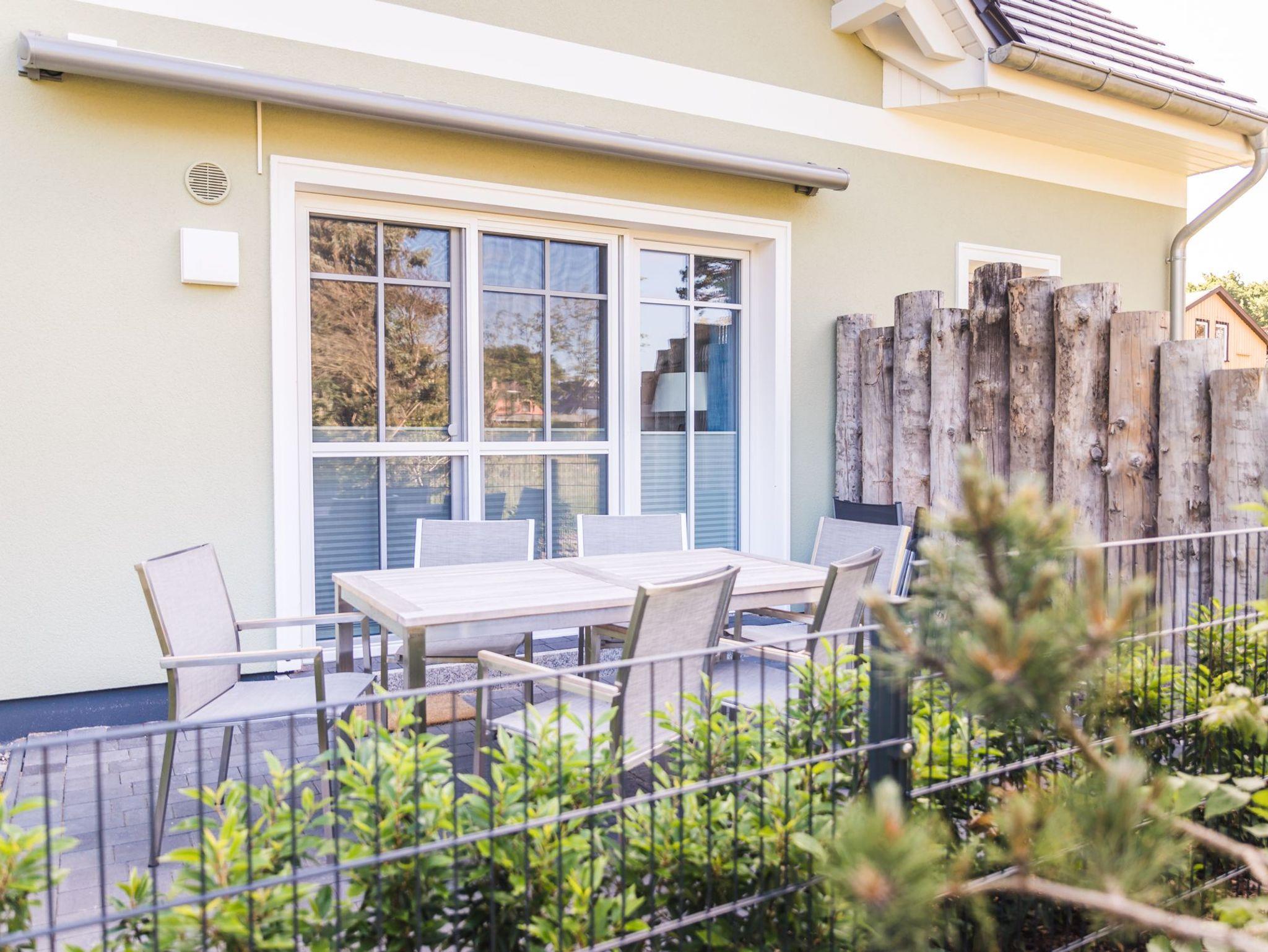 Am Morgen lädt die Terrasse mit Vorgarten zum Frühstücken ein.