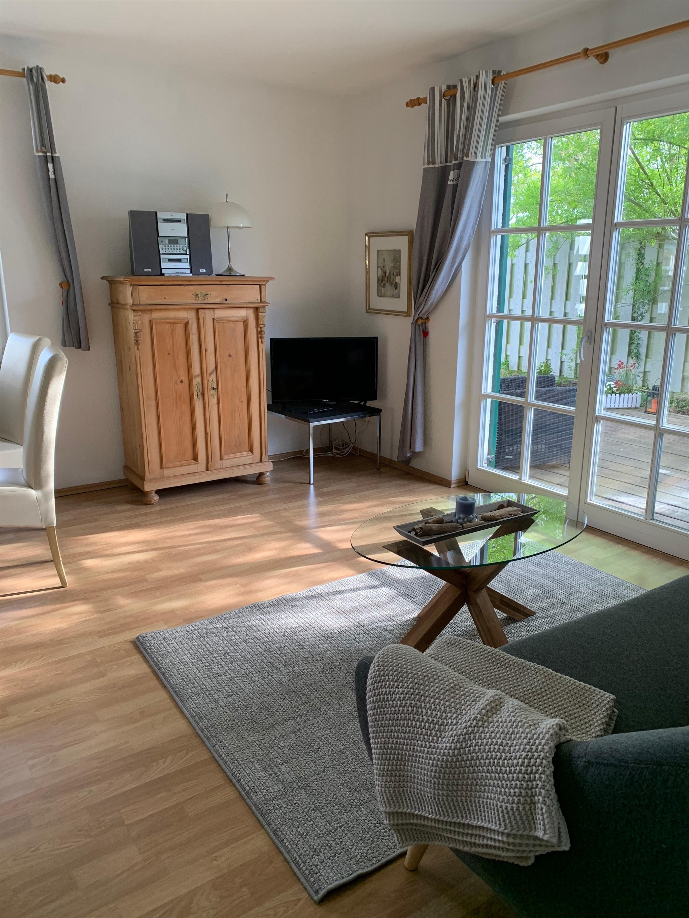 Die Ferienwohnung \"unter Deck\" im Erdgeschoss verfügt über einen sehr hellen Wohnraum. Die fröhlichen Möbel heißen Sie vom ersten Augenblick an willkommen. Entspannen Sie sich auf der, mit Schiffsplanken ausgelegten, Wind- und sichtgeschützten Terrasse oder im Garten direkt am Haus. Bitte beachten Sie, dass ein Wäschepaket mit Handtüchern und Bettwäsche optional angeboten wird. Sprechen Sie uns gerne an.