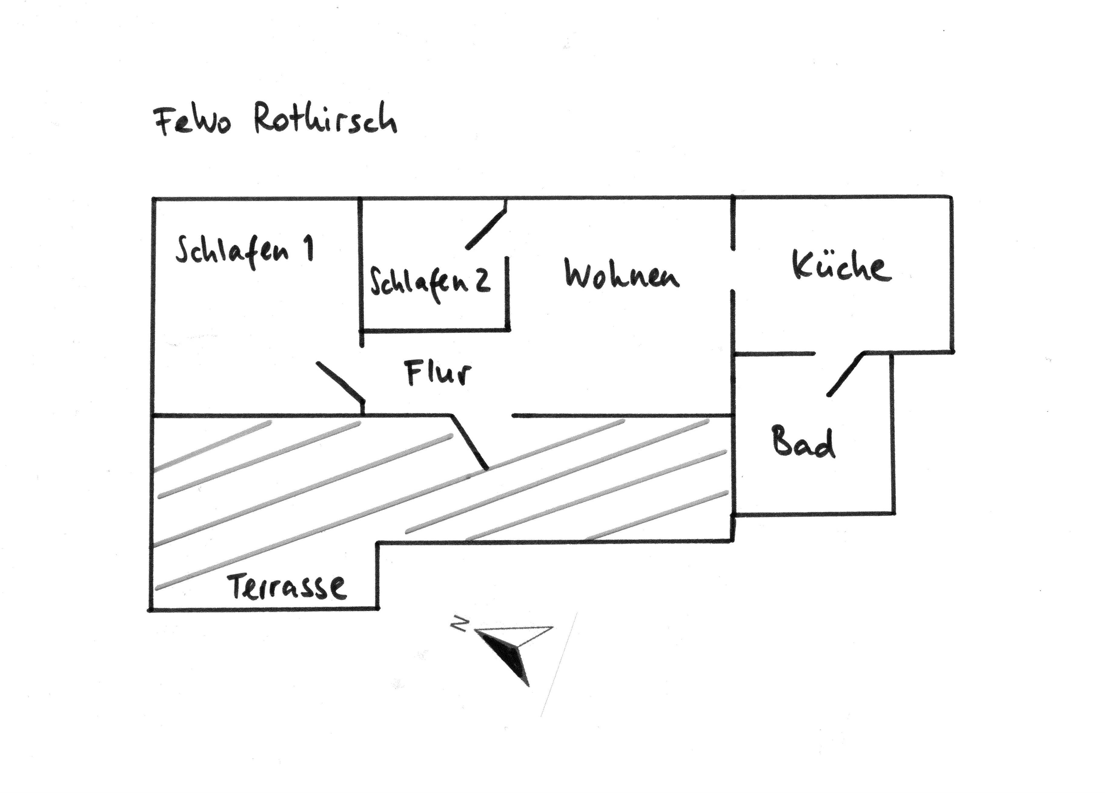 * Die Wohnung Rothirsch mit separatem/eigenem Eingang ist 59 qm groß und verfügt über 2 Schlafzimmer mit jeweils Doppelbett, 1 Wohnzimmer mit Sat-TV, 1 Bad mit Dusche, Föhn und Waschmaschine sowie 1 Küche mit Geschirrspüler, 4 Kochfeldern, Backofen, Mikrowelle, Kühl-/Gefrierkombi, Toaster, Kaffeemaschine und Wasserkocher. Bettwäsche buchbar ab 3 Nächten gegen Gebühr; Handtücher sind mitzubringen. Eine eigene Terrasse mit Gartenmobiliar ist direkt vor der Wohnung vorhanden. Unseren Gästen steht ein Grill im kleinen Garten sowie ein Parkplatz auf dem Grundstück zur Verfügung. Hausgäste können E-Autos bequem an der Unterkunft laden (Typ2, 11kw).