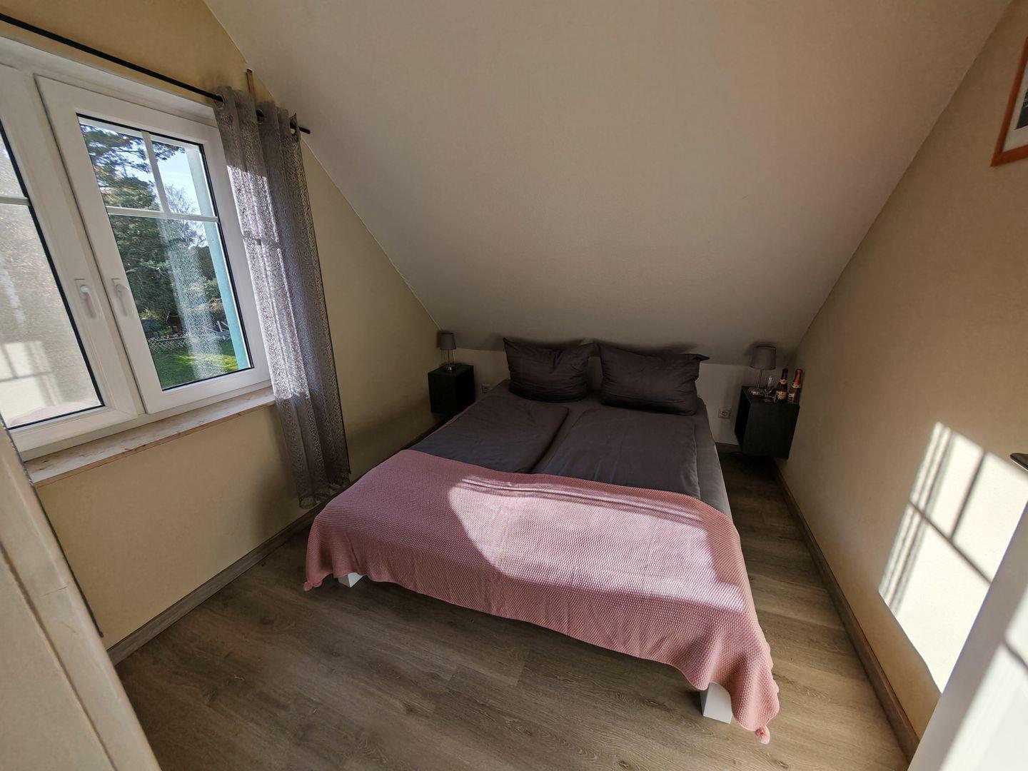 Das Ferienhaus verfügt über insgesamt drei Schlafzimmer, von denen zwei mit komfortablen Doppelbetten und das dritte mit einem ausziehbaren Tagesbett ausgestattet sind. Hier finden bis zu fünf Personen ausreichend Platz für einen erholsamen Schlaf.