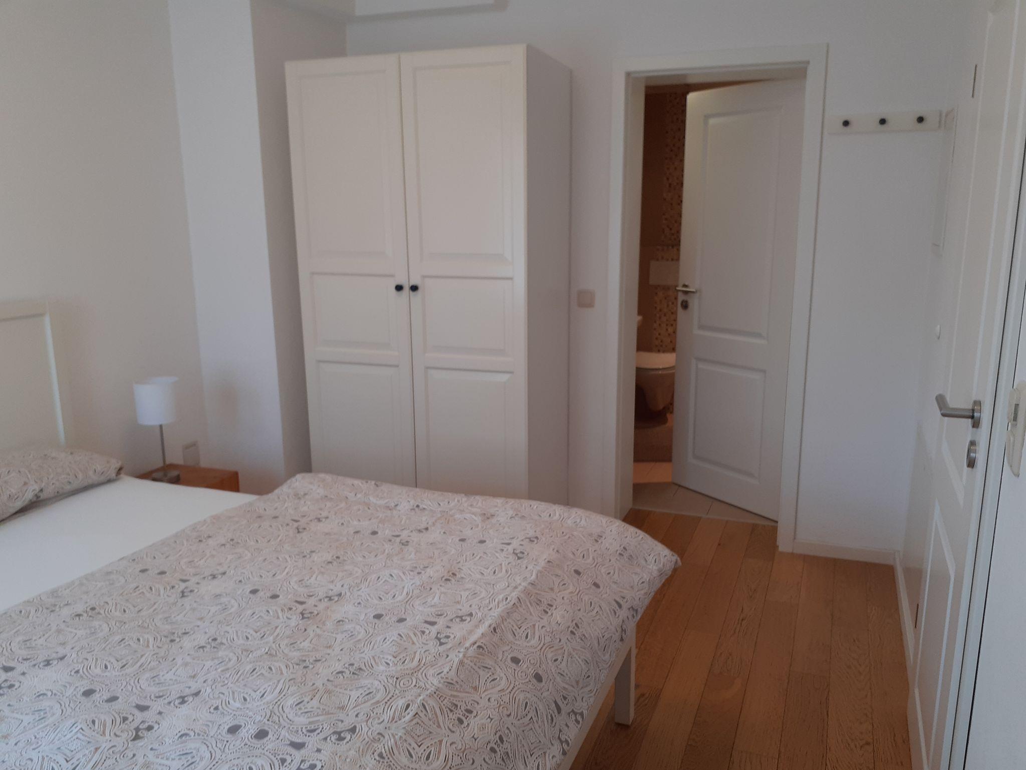 30qm große Ferienwohnung im ersten Stock, voll ausgestattete Wohnküche mit Spülmaschine und extra Schlafsofa ca. 1,40 Meter breit von Ikea, Sat-TV, ein separates Schlafzimmer, Bad mit Dusche, Bodenheizung, Umlaufbalkon. W-LAN vorhanden (leider etwas schwach auf Grund der Lage).