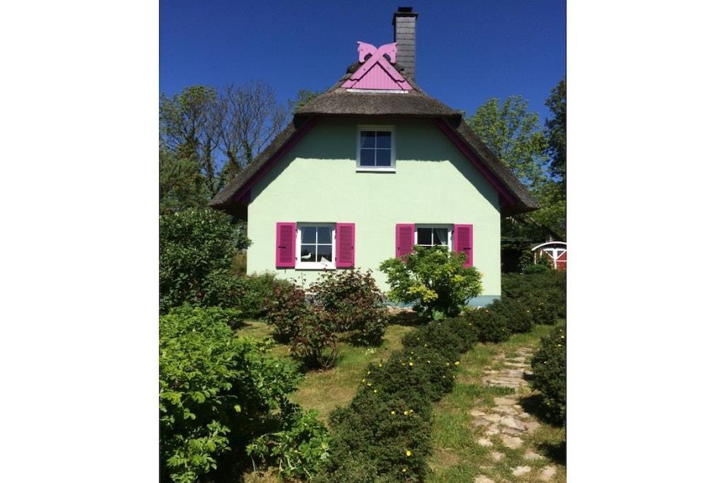 Unser Ferienhaus ist gemütlich eingerichtet und idyllisch gelegen. Sie wohnen auf 60m² mit einem Wohn-/Essbereich, 1 Schlafzimmer, Küche und Bad. Im Wohn-/Essbereich finden Sie einen großzügigen Essplatz, eine gemütliche Sitzecke sowie TV und Radio. Im gesamten Erdgeschoss sorgt die Fußbodenheizung für warme Füße. Sie können jedoch auch den Kaminofen selbst heizen. Durch eine große Terrassentür gelangen Sie auf die Terrasse und in den wunderschönen Garten. Eine gut ausgestattete Küche und ein kleines Bad befinden sich ebenfalls im Erdgeschoss. Im Dachgeschoss befindet sich der offene Schlafbereich mit Doppelbett, Klappbett sowie Kleiderschrank und Schreibtisch.