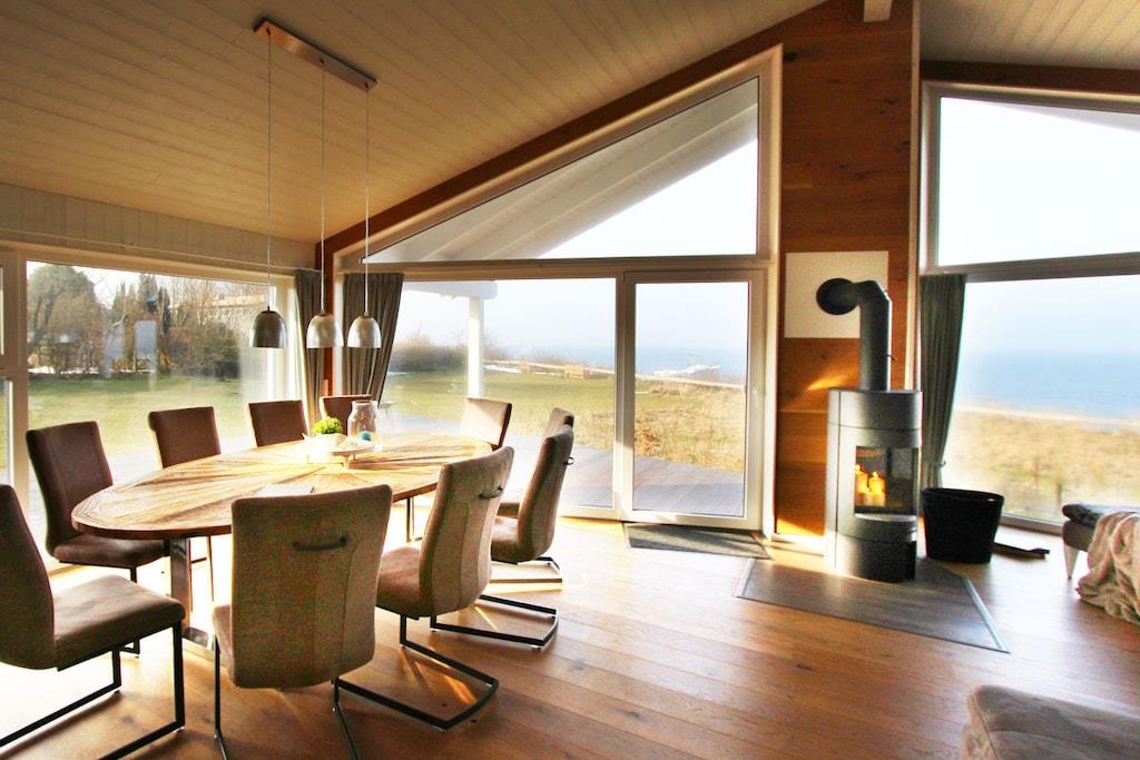 Detta rymliga semesterhus är perfekt för hela familjen. Vardagsrums- och matsalen är ljus och välkomnande tack vare burspråket och de stora dörrarna. Köket i öppen planlösning med frukostbar är i direkt anslutning till vardagsrummet och har direkt tillgång till de vackra, täckta terrasserna som sträcker sig runt huset. Vardagsrummet har en liten vedspis för mysiga kvällar. Det stora badrummet är utrustat med bastu och bubbelpool. Semesterhuset har tre bekväma dubbelsängar (180 x 200 cm). Det finns också ett sovrum med två enkelsängar. Ett stort, bekvämt sovloft med en dubbelmadrass (180 x 200 cm) är perfekt för barn.