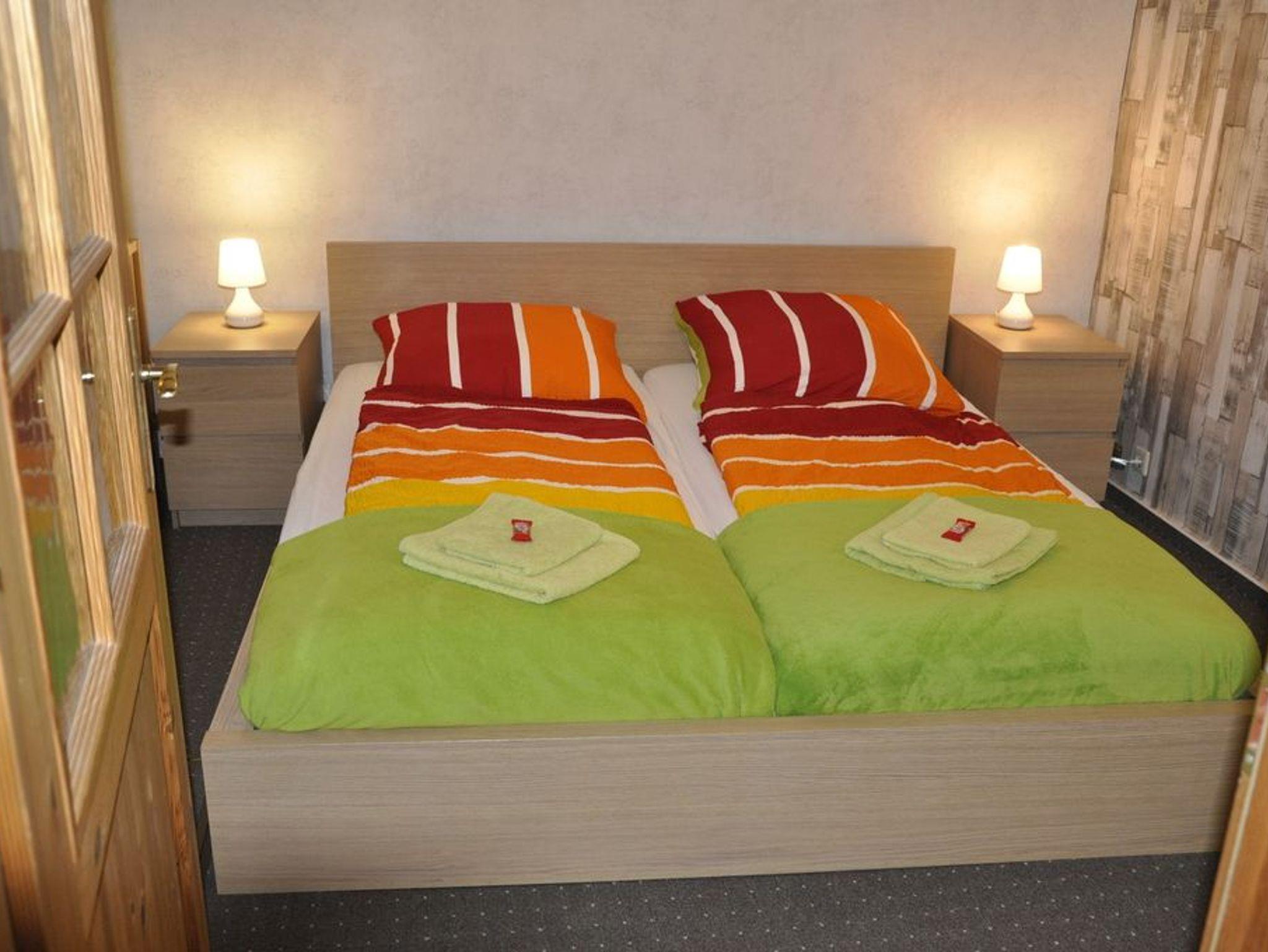 Zwei Schlafzimmer mit Doppelbetten, Einzelbetten und Kinderbetten: Das Schlafzimmer im Erdgeschoss ist mit einem Doppelbett, einem Kinderbett und einem großen Kleiderschrank ausgestattet. Das zweite Schlafzimmer befindet sich im 1. OG und bietet mit zwei Doppelbetten Schlafgelegenheiten für 4 Personen.