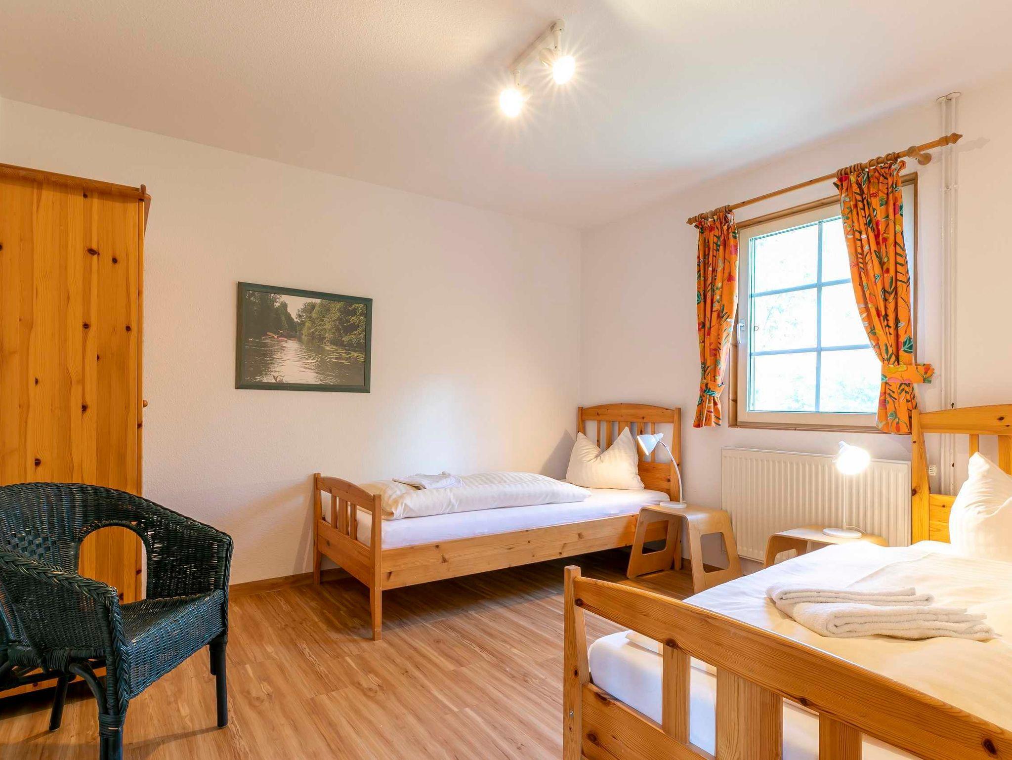 In 2 Schlafzimmern, eines davon ist mit einem Doppelbett und das andere Schlafzimmer ist mit 2 Einzelbetten ausgestattet, finden 4 Personen Platz. Mit einer Größe von 89 qm ist die barrierefreie Ferienwohnung sehr großzügig und bietet Gästen mit Rollstuhl genügend Platz. Die Möbel sind verschiebbar. Die Türbreite beträgt 92 cm. Ebenerdige Zugänge zum Bad und zu den Zimmern erleichtern die barrierefreie Bewegung in der Ferienwohnung. Lichtschalter und Steckdosen sind in einer Höhe von 106 cm angebracht. Haltegriffe im Bad erleichtern behinderten Gäste die Nutzung der ebenerdigen Dusche.