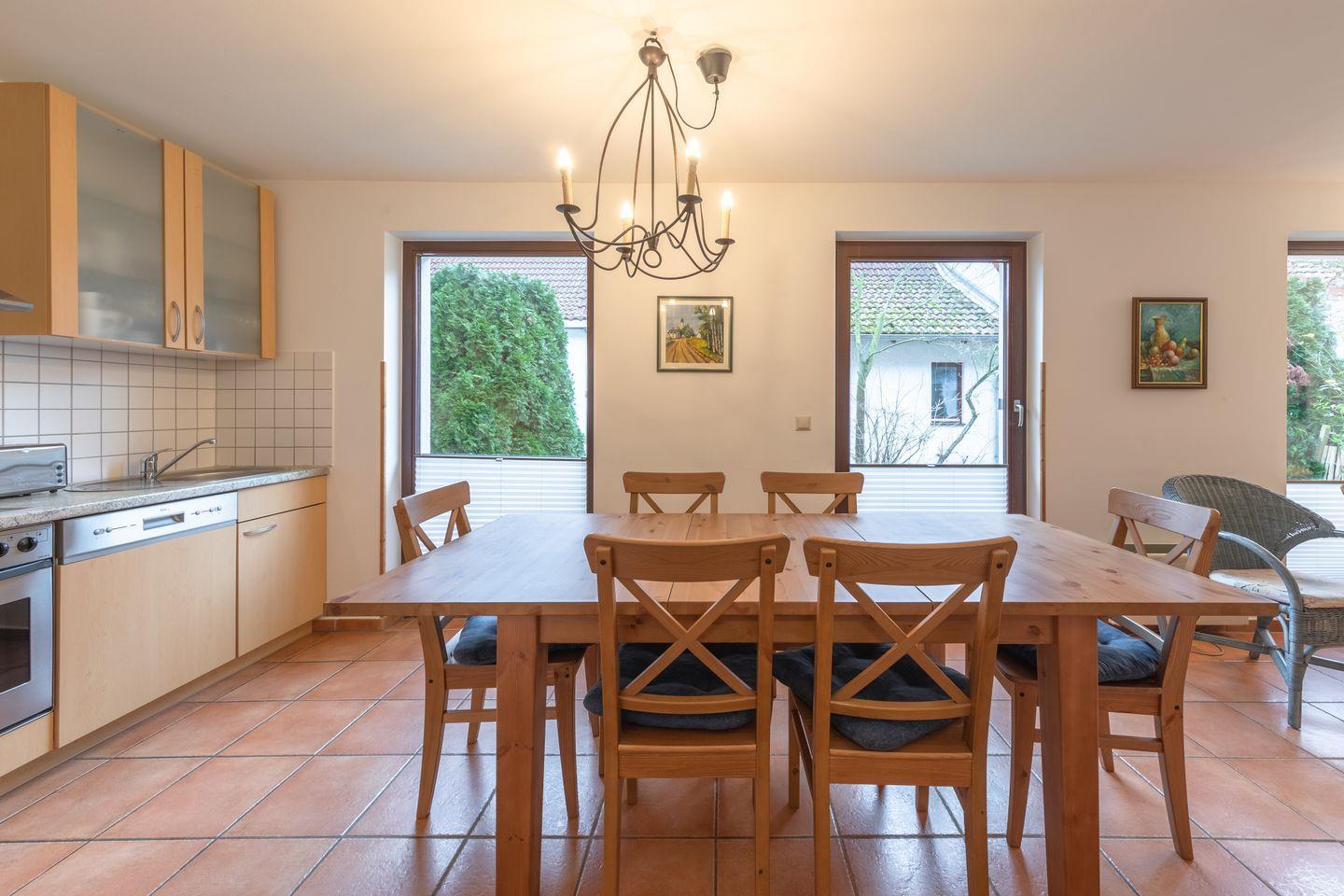 Das Ferienobjekt liegt in einer Reihenhaussiedlung und bietet Platz für bis zu 6 Personen mit 3 Schlafzimmern, 2 Badezimmern, Wohn-/Essbereich, Einbauküche, Terrasse und PKW-Stellplatz.
