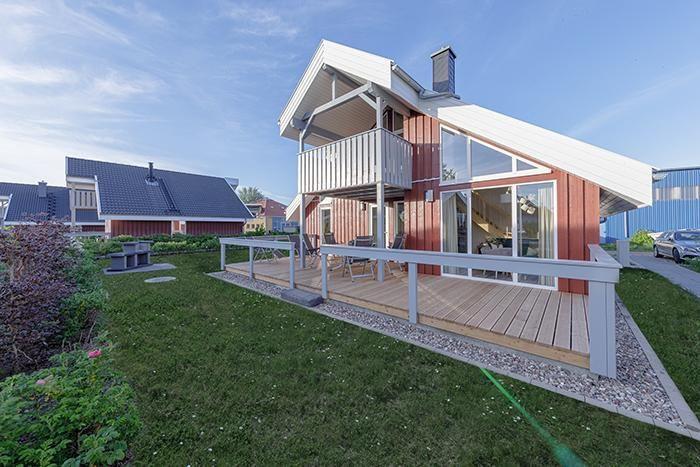 Das Ferienhaus im skandinavischen Stil bietet Platz für bis zu 6 Personen auf 2 Etagen mit 2 Schlafzimmern und offener Schlafgalerie, Wohn-/Essbereich, Einbauküche, Badezimmer mit Sauna und Whirlpool, Pkw-Stellplatz und Terrasse.