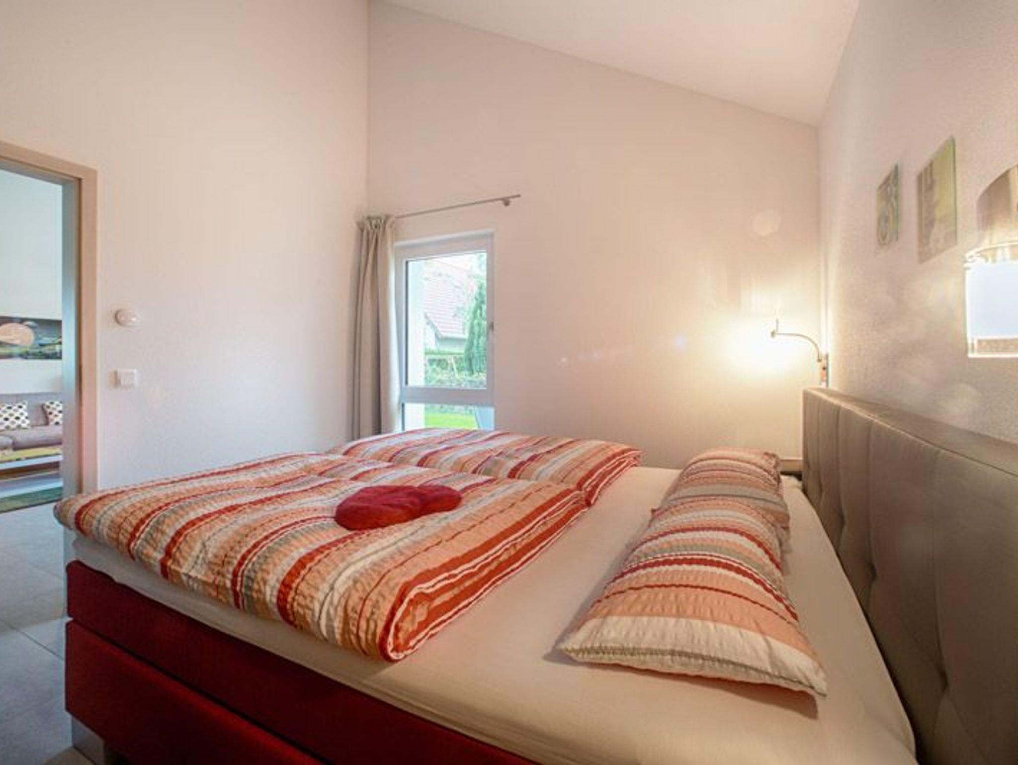 Das Haus verfügt über zwei Schlafzimmer. Der große Schlafraum ist mit einem Doppelbett (Boxspringbett) ausgestattet und verfügt über einen großen Kleiderschrank. Das kleinere Schlafzimmer ist mit zwei Einzelbetten und einer Kommode ausgestattet. Alle Betten verfügen über hochwertige Matratzen und Untergestelle. Eine gute Grundlage für erholsamen Schlaf.