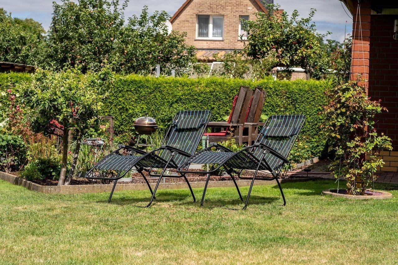 Die Ferienwohnung verfügt über einen privaten Balkon, der zum Entspannen einlädt. Der eigene Garten bietet eine großzügige Liegewiese mit komfortablen Liegestühlen und Gartenliegen. Ein Holzkohlegrill steht bereit, um schöne Grillabende zu genießen. Zudem ist eine E-Ladestation für Elektrofahrräder vorhanden, was die Anreise besonders bequem macht.