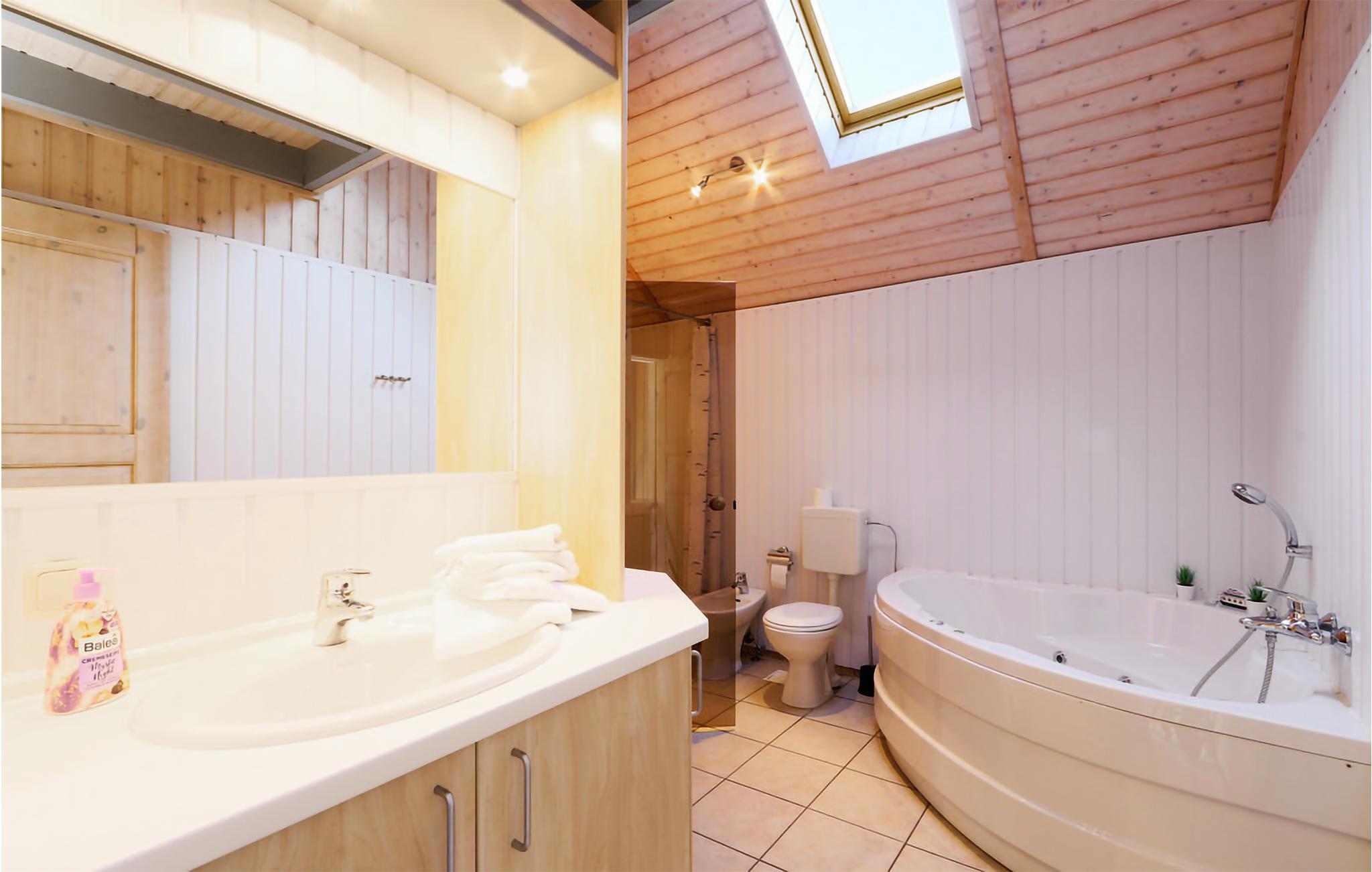 Den rymliga terrassen erbjuder en underbar plats i solen. Här kan du koppla av medan barnen leker i trädgården. På övervåningen finns ett 2:a sovrum med 2 enkelsängar och ett öppet sov- och lekgalleri med en dubbelsäng. Härifrån har du tillgång till den täckta loggian. Detta är perfekt för att njuta av solnedgången.
