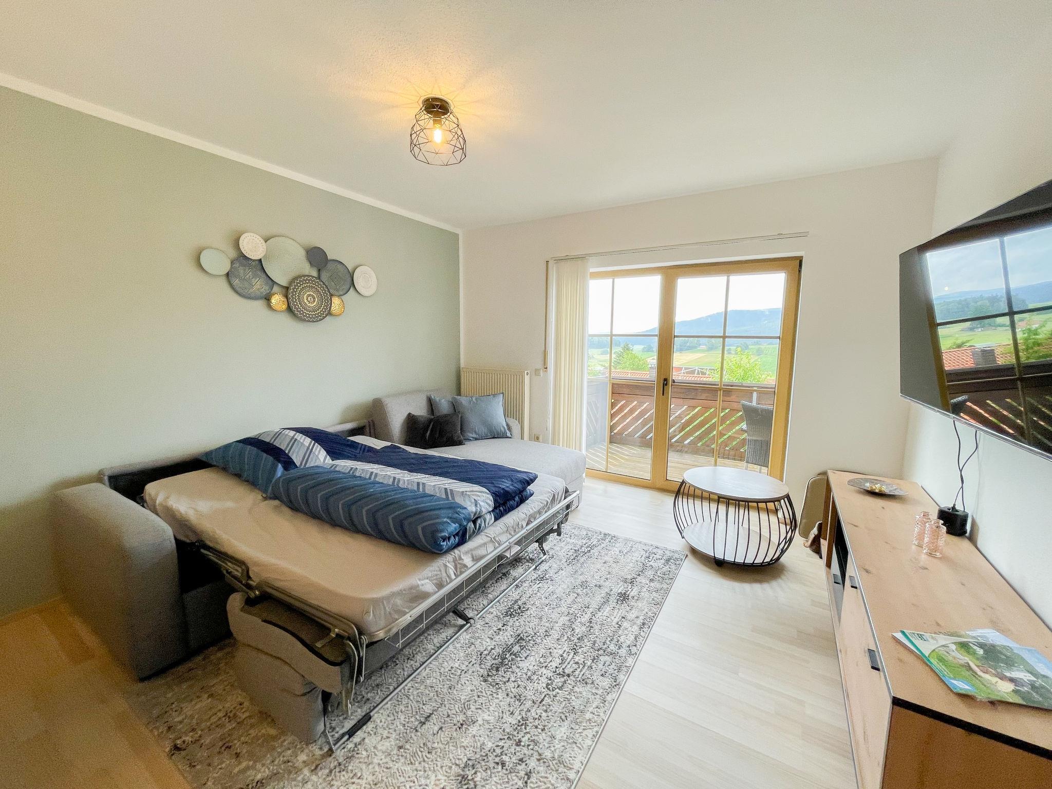 "ReMaWe", 2-room apartment 60 m2 on 1st floor. Object suitable for 2 adults + 3 children. Beautiful and cosy furnishings: living/sleeping room with 1 sofabed (140 cm, length 190 cm), dining nook and satellite TV (flat screen). Exit to the balcony. 1 room with 1 x 2 bunk beds, 1 double bed. Exit to the balcony. Kitchen (oven, dishwasher, 4 induction hot plates, toaster, kettle, electric coffee machine). Shower/WC. Heating. Balcony. Balcony furniture, box-room. Panoramic view of Geißkopf. Facilities: washing machine. Internet (WiFi, free). Garage (1 car). Please note: non-smokers only. Private entrance, smoke alarm.