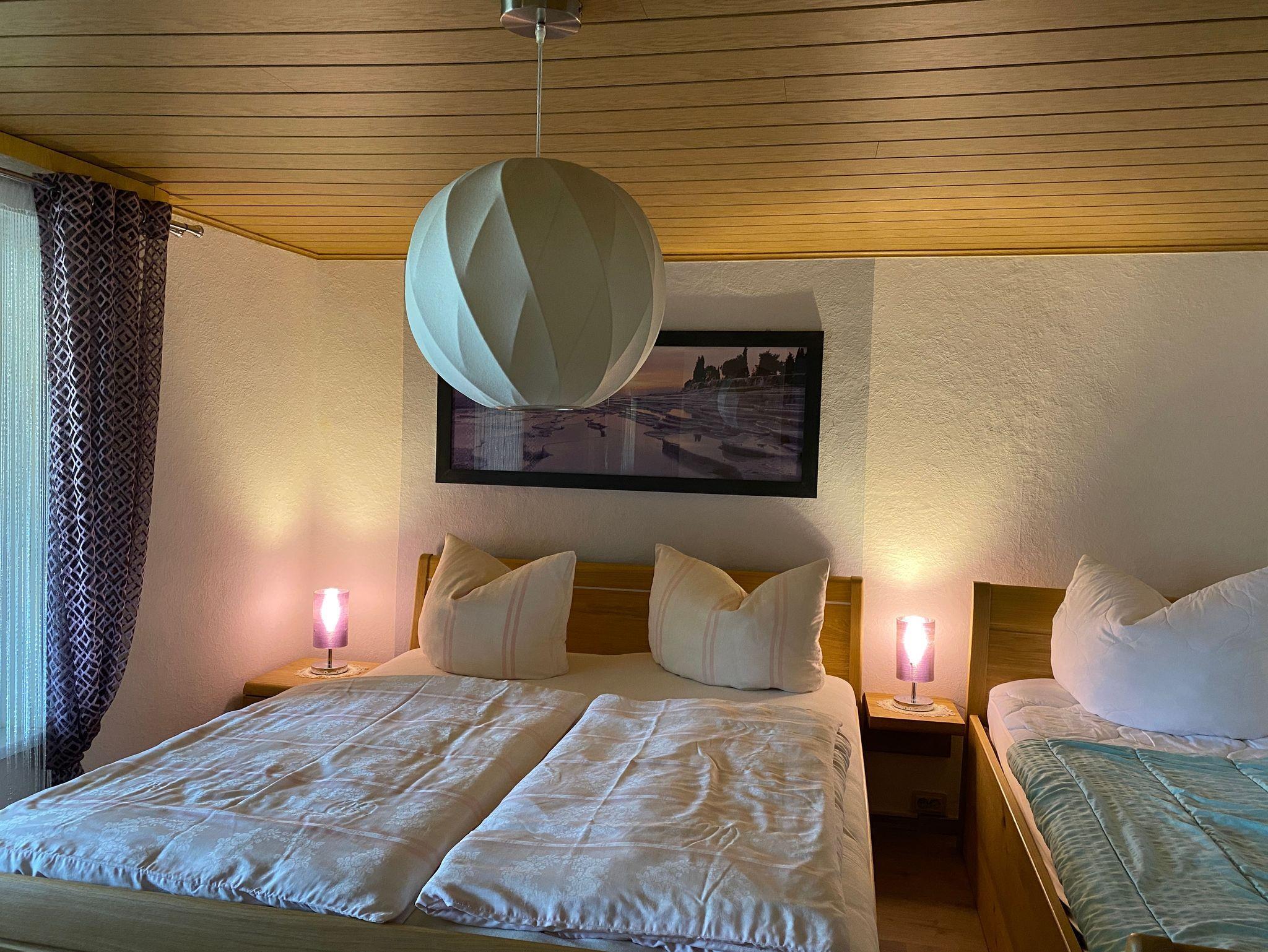 2 Schlafräume je mit Doppelbett (1,80 x 2,00m) und Einzelbett und mit 1x WC mit Waschbecken zu jedem Schlafraum. Zusätzlich ein kleines Duschbad, ebenerdig.