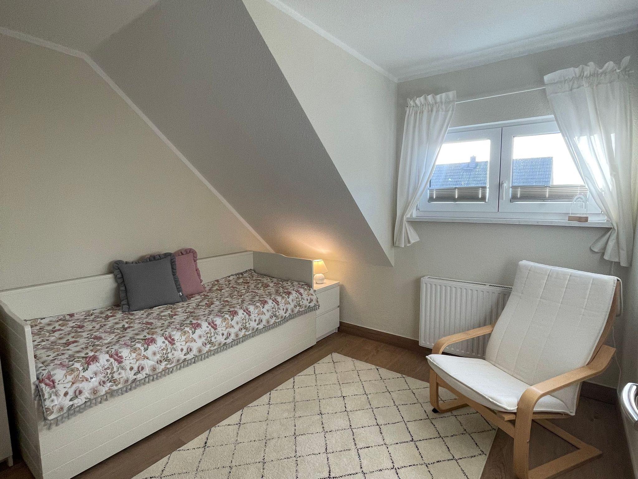 Obergeschoss: insgesamt drei großzügige Schlafzimmer überwiegend mit TV. In allen Schlafräumen ist das Aufstellen eines Babybettes möglich. Ein zweites Duschbad/ WC bietet weiteren Komfort.