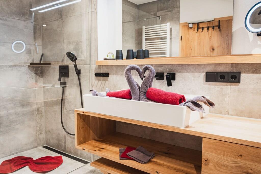 Vi hyr ut en semesterlägenhet med fullt utrustat kök/vardagsrum (kylskåp med frysfack, ugn, keramikhäll, diskmaskin, helautomatisk kaffemaskin, brödrost, äggkokare, mixer, köksvåg, bakplåtspapper, salt-, peppar- och diskmaskinstabletter). Den har en bekväm sittgrupp med platt-TV och tillgång till en stor balkong. Våra Edelweiss-sängar har madrasser i varierande fasthet, justerbara ribbor och ett värdeskåp. Satellit-TV finns också i sovrummen. Våra badrum är utrustade med sminkspegel, hårtork, toalettpapper och en barnpall.