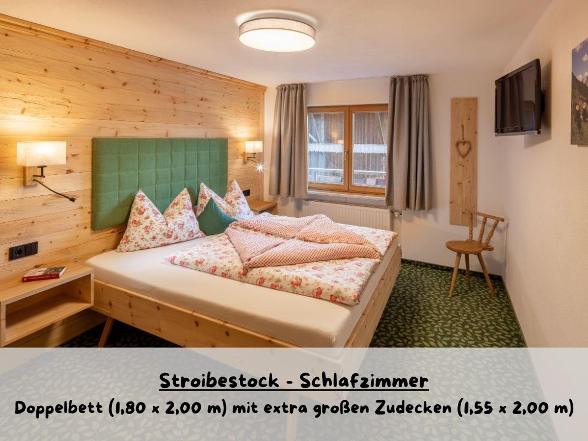 • Elternschlafzimmer mit Zirben-Doppelbett und TV