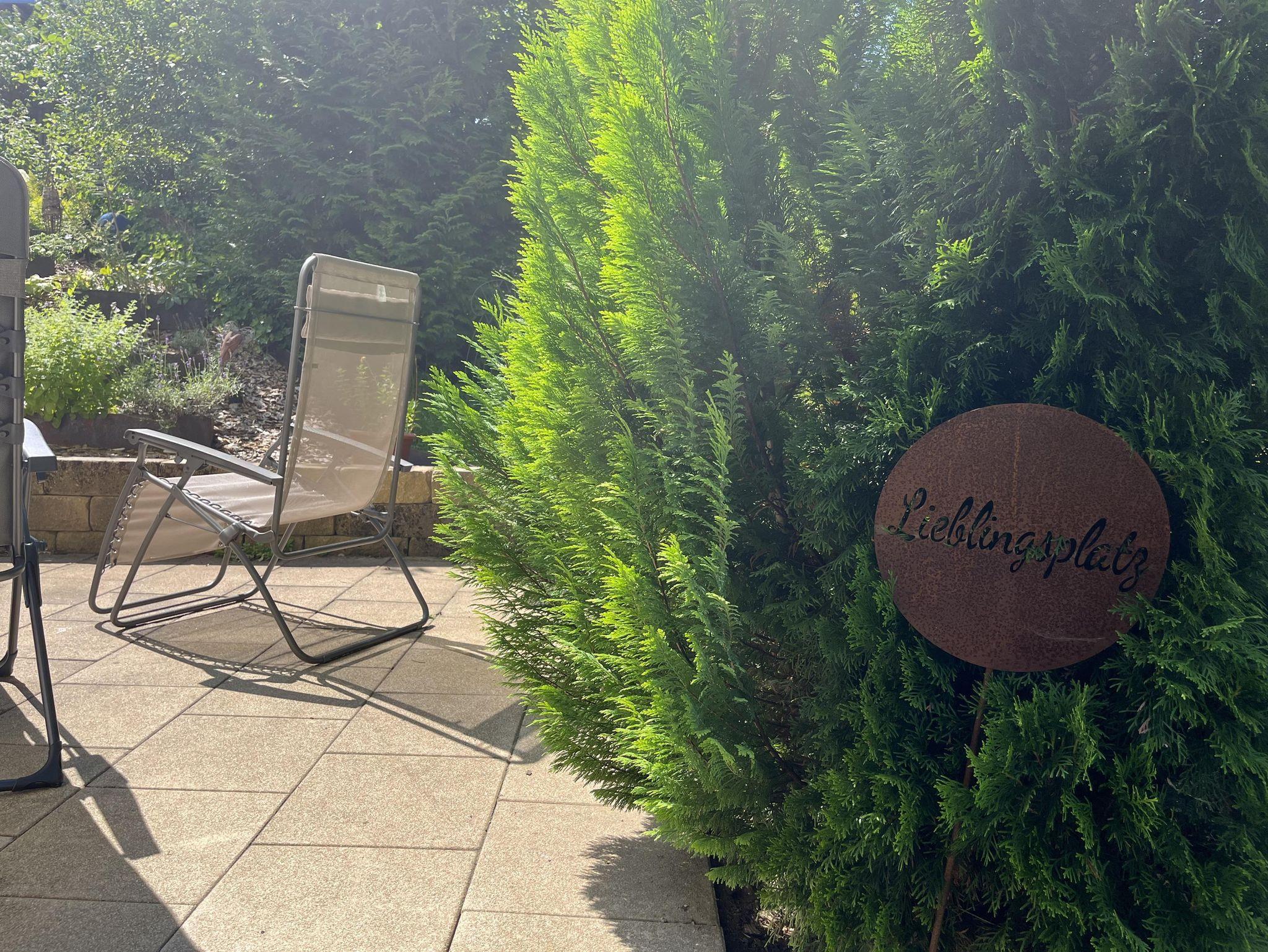 Der Lieblingsplatz verfügt über zwei Terrassen. Eine Frühstücksterrasse (Osten) und einer Hauptterrassse mit Nachmittag/Abendsonne.