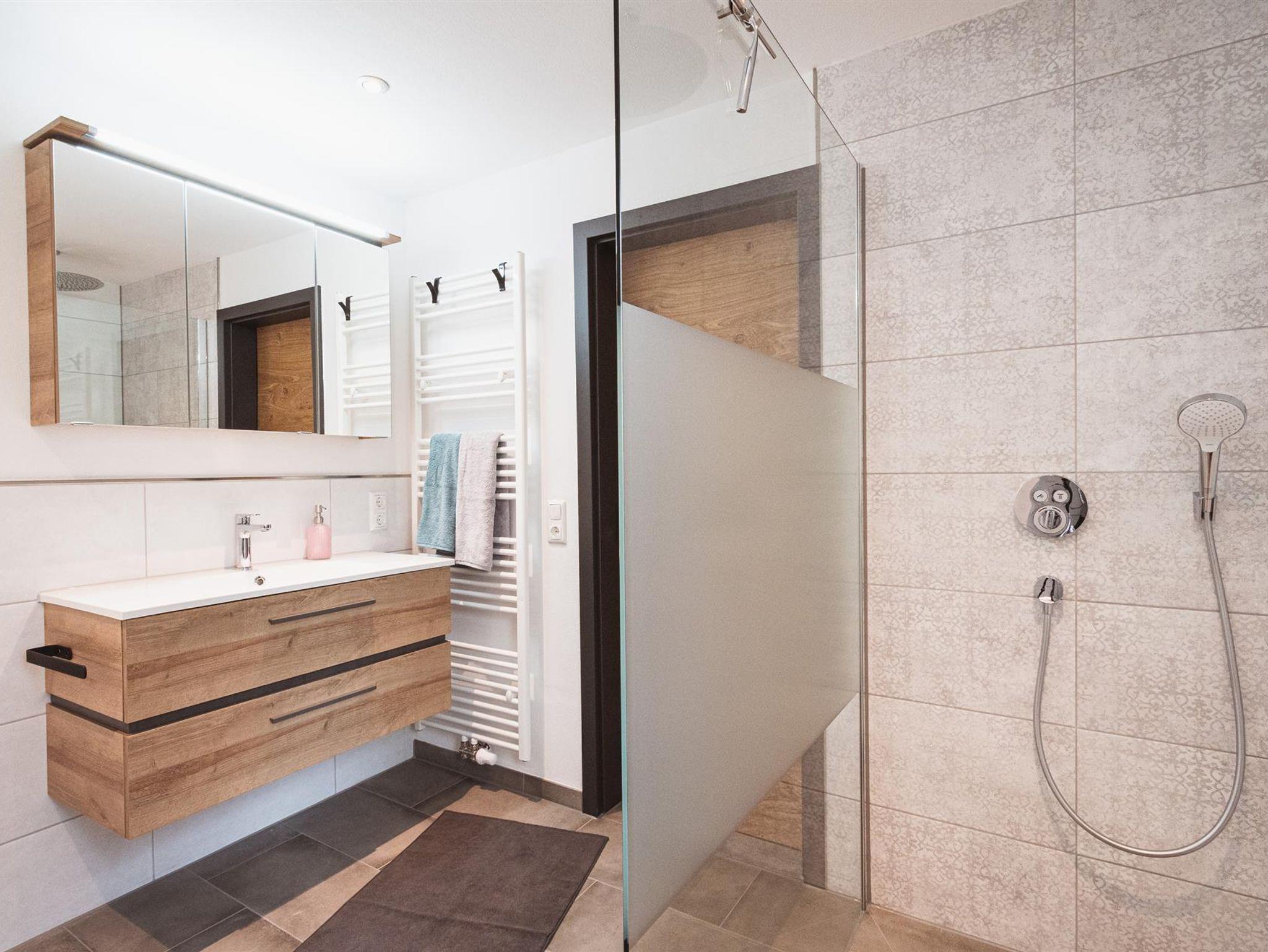 Jedes Schlafzimmer bietet 2, bzw. 3 Schlafplätze und hat ein eigenes Bad mit begehbarer Dusche, Regendusche, Fön, Handtuchwärmer und WC. Im großen Bad bieten wir außerdem noch eine Badewanne an. Flachbild-Fernseher und geräumigen Kleiderschrank mit ausreichend Bügel.