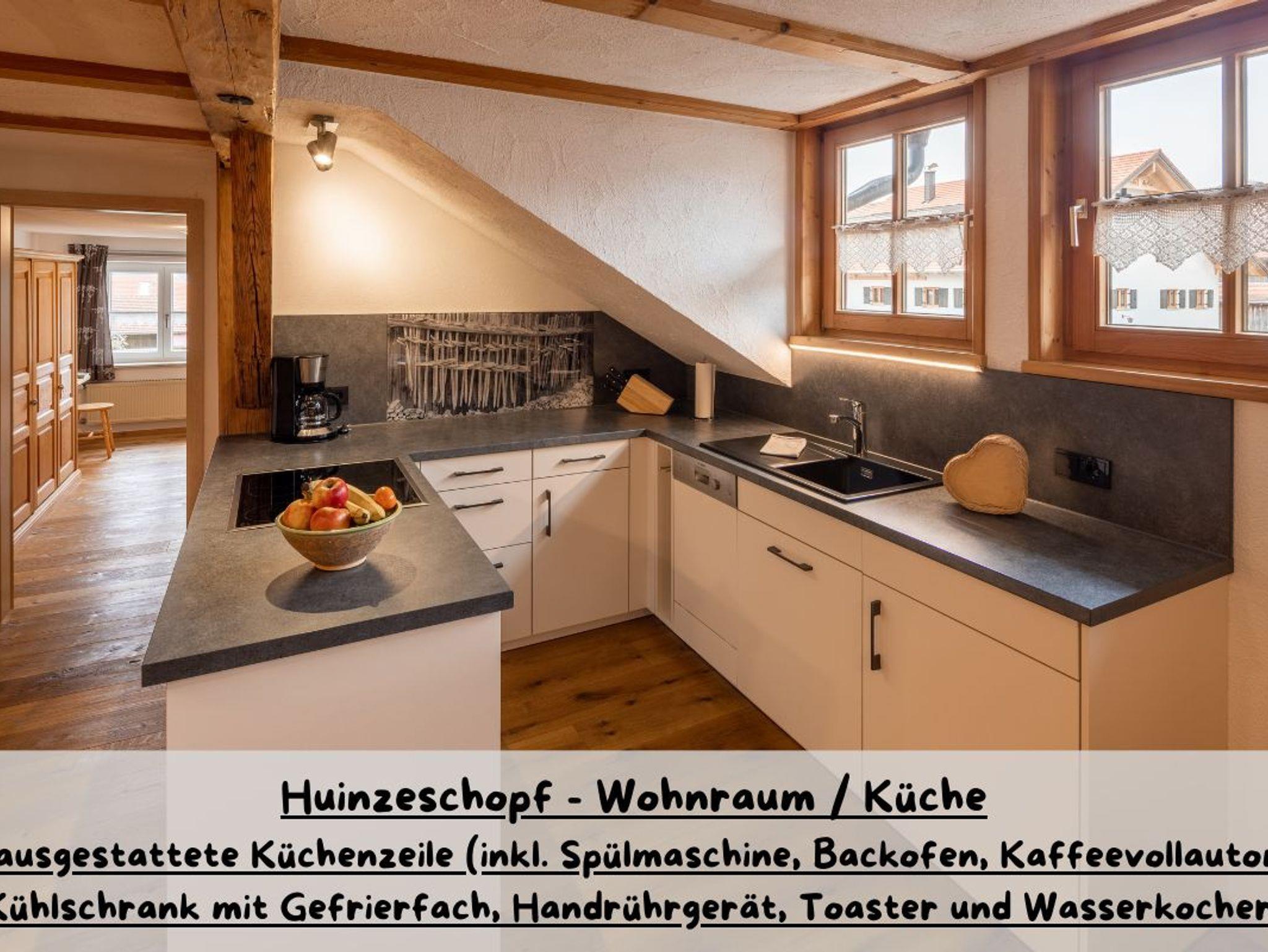 • Wohnküche mit vollausgestatteter Küchenzeile (inkl. Spülmaschine, Backofen, Kühlschrank mit Gefrierfach, …)