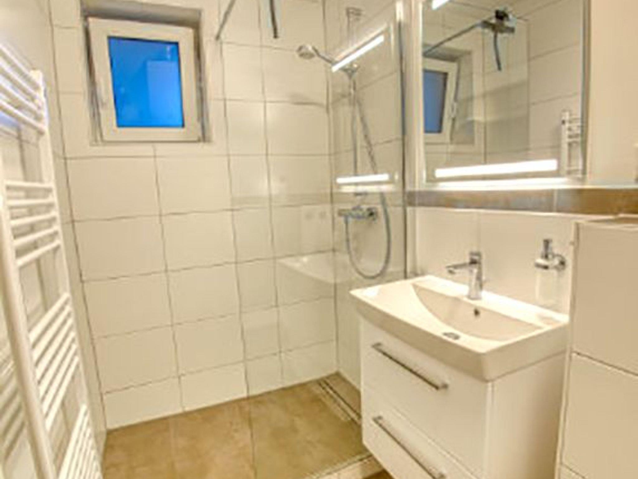 1. Etage und sehr hell, freundlich und komfortabel eingerichtet mit großzügigem Ess- und Wohnbereich. Offene, voll ausgestattete Küche, Kühlschrank und separater Gefrierschrank mit 3 Eisfächern. Nespresso sowie Filterkaffeemaschine. Eigene Waschmaschine. Schönes Schlafzimmer mit großer Ankleide (mit Glastür getrennt). Bett (1,60 x 2,00 m) mit getrennten Matratzen. Safe auch für Laptop geeignet. Fernseher mit Funktionen für Amazon Prime, Netflix etc. eingebaut. Bad mit Walk-in-Dusche, WC, Handtuchheizkörper und Fußbodenheizung. Wäschepakete können hinzugebucht werden.