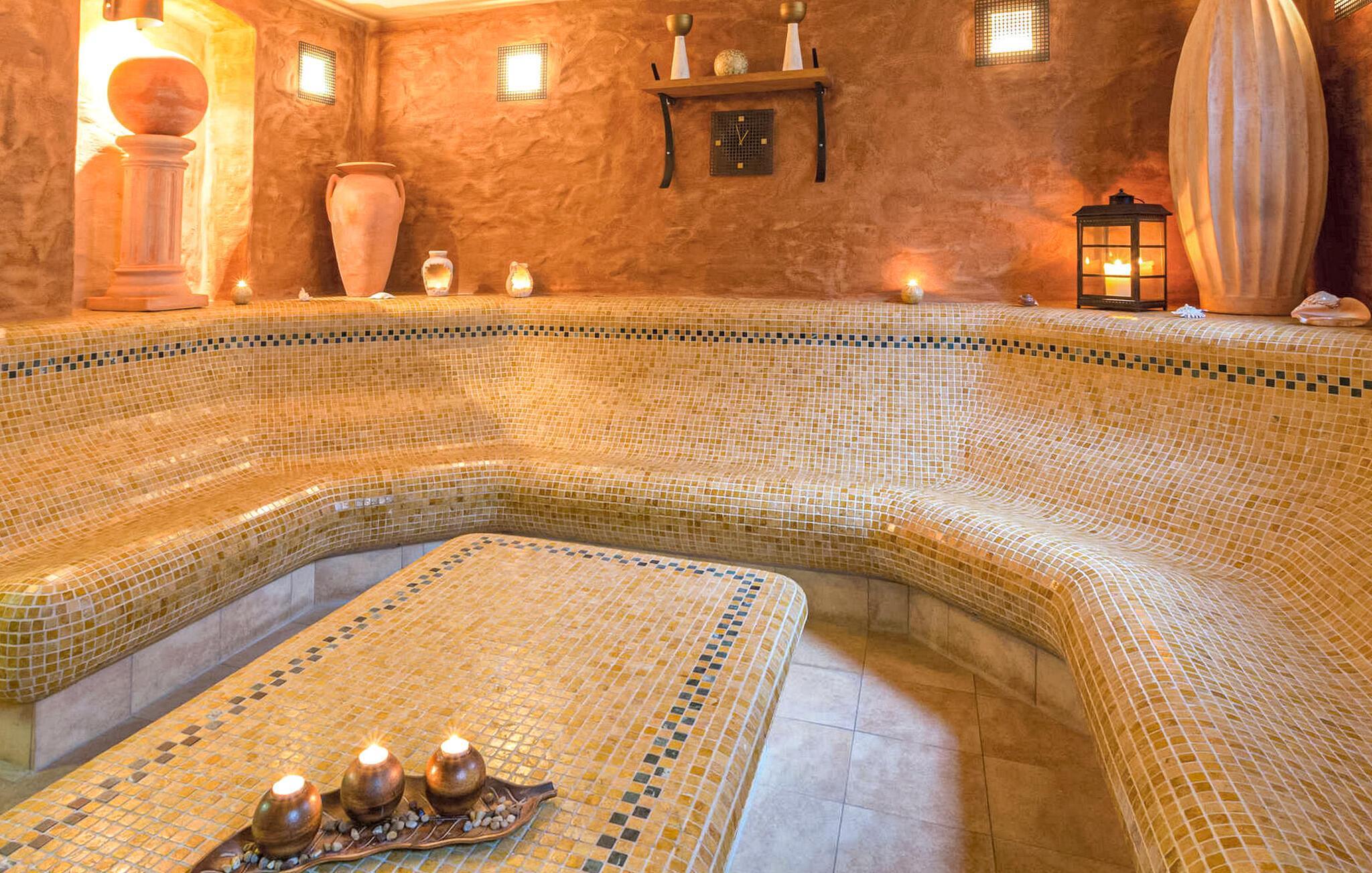 Fastigheten har en egen brygga, en fiskdamm med en mysig läshörna, gräsmatta för solbad, sandlåda, bordtennisbord, gott om utrymme för lek, grillplats för grillning, cykelförvaring och parkeringsplatser. Flera bastur eller massage kan användas i wellnessområdet mot en avgift (bokning krävs). Dessutom: Cykeluthyrning (6 EUR/cykel/dag) och användning av tvättstugan med tvättmaskin och torktumlare ingår i totalpriset: Slutstädning, sänglinne, handdukar, vatten och energi. Betalas på plats: Besöksskatt, användning av bastu, massage, cykeluthyrning. Rökning är endast tillåten utomhus.