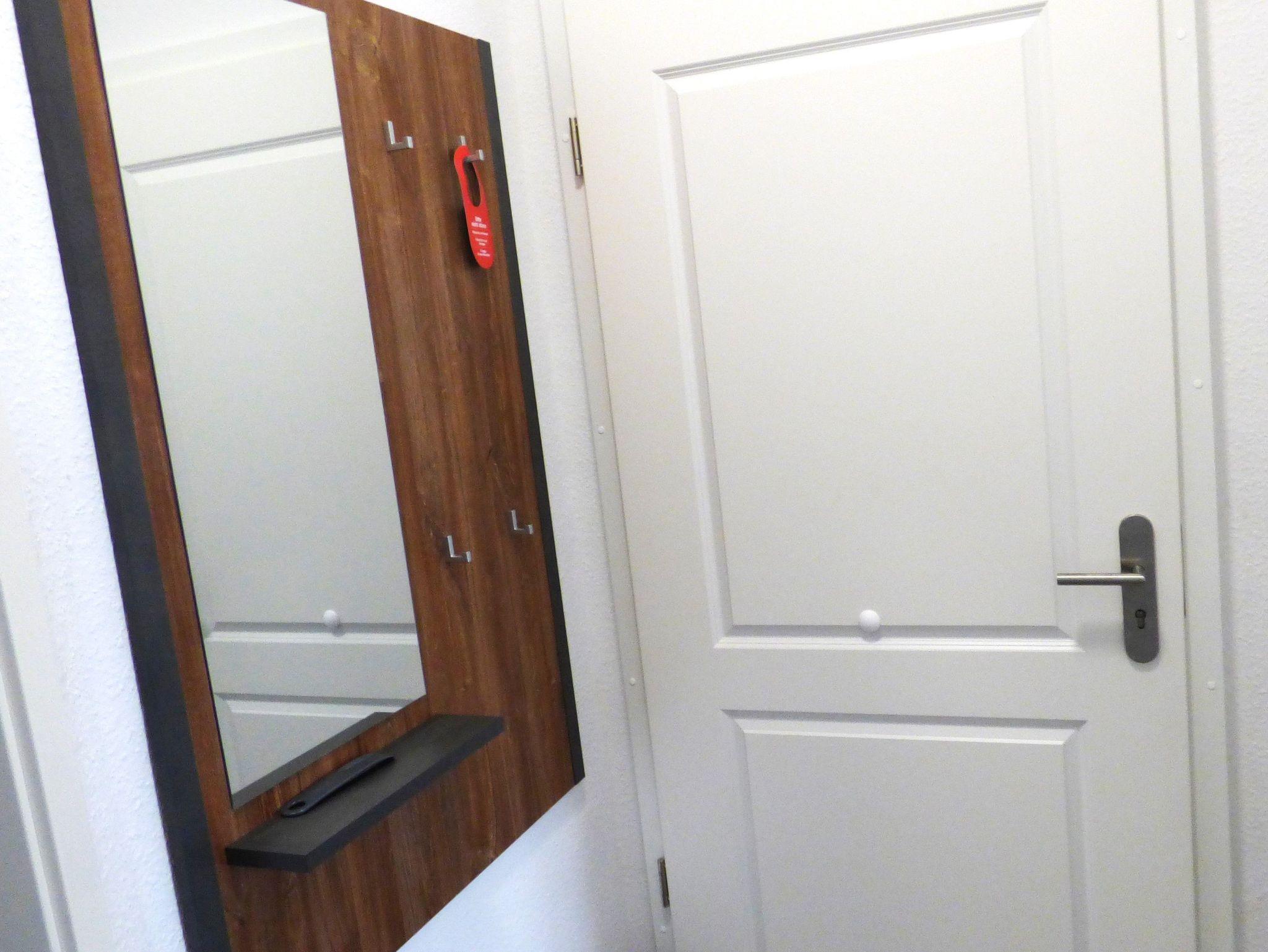 Das Schlafzimmer verfügt über ein Doppelbett mit verstellbarem Lattenrost, Kleiderschrank mit Kofferablage und Garderobe gehören dazu.
