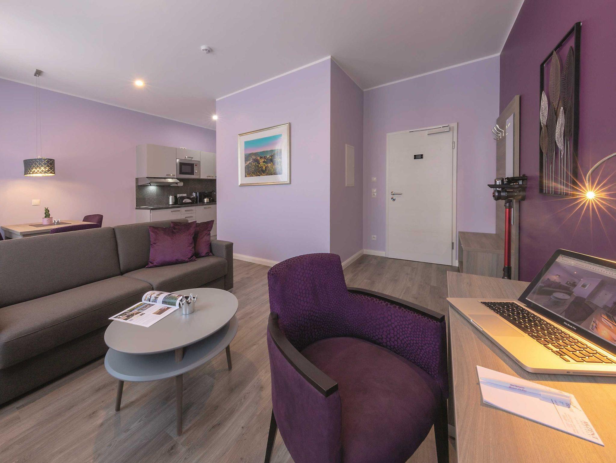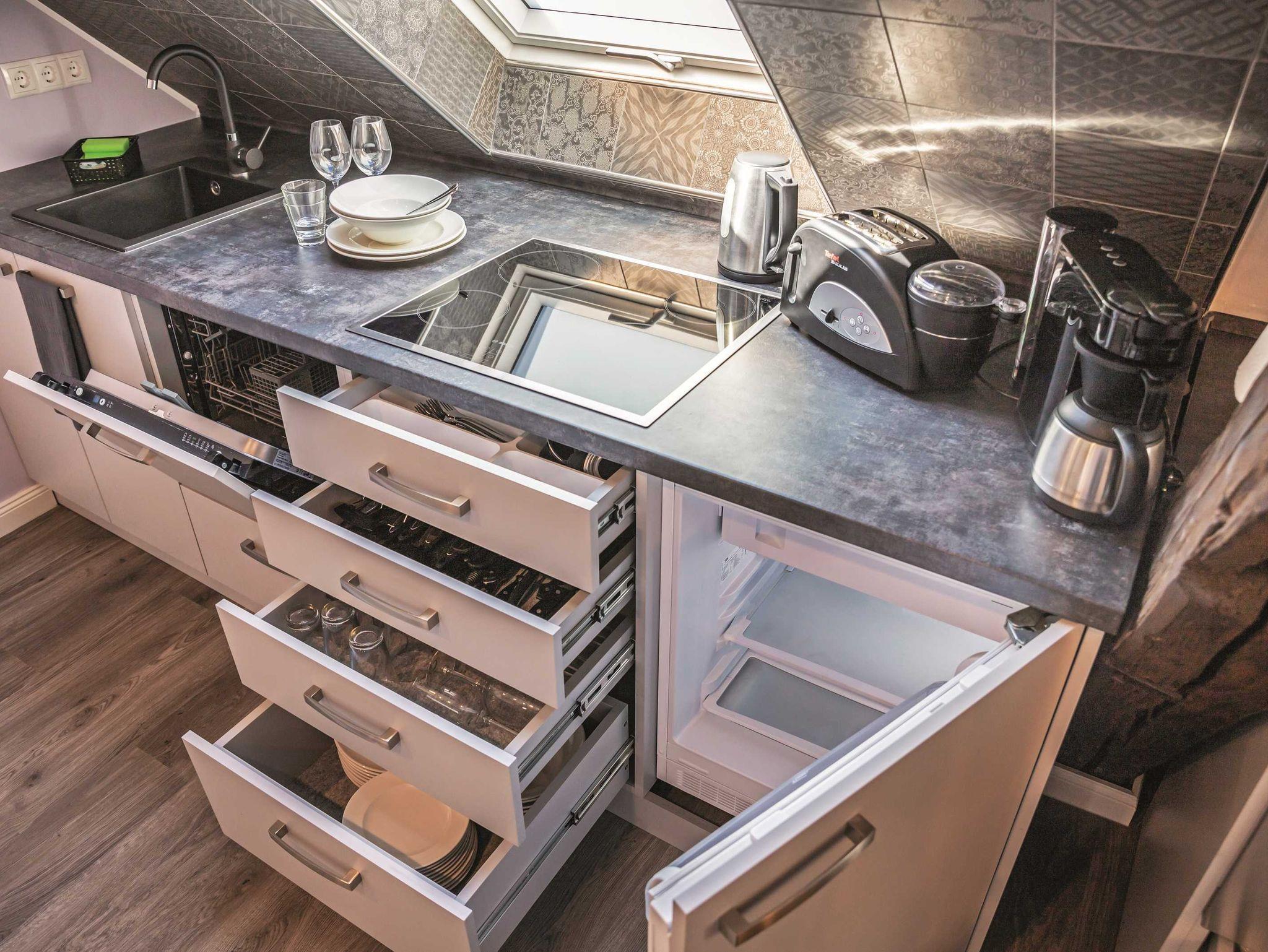 Im Haus Burgenheimat befinden sich 8 Apartments: 2 Princesize-Apartments (20 - 30 m²), 1 Queensize-Studioapartment (25 m²), 2 Queensize-Apartments (30 - 40 m²) und 3 Kingsize-Apartments (40 - 50 m²). Schlafen Sie wie ein König in den komfortablen überlangen Boxspringbetten (2,20 m) der Premium-Marke Royal Bedding®. Die Bettbreite beträgt in den Princesize-Apartments 1,00 m, in den Queensize-Apartments 1,60 m und in den Kingsize-Apartments 2,00 m. Alle Betten haben eine durchgängige extrahohe Matratze für besonderen Schlafkomfort. Im ?Thronsaal?, dem modernen Badezimmer, erwartet Sie ein WC mit integrierter Lüftung, ein stilvolles Waschbecken und eine bodengleiche Dusche mit Regenbrause und Handbrause. Die Küche ist mit allem, was man braucht, ausgestattet. Bereiten Sie sich z.B. ein leckeres Frühstück mit dem Tefal Toast'n'Egg und brühen sich Ihren Kaffee mit der Senseo Switch entweder mit Filter oder mit Kaffeepad. Auf dem 4-Platten-Cerankochfeld lassen sich auch komplette Menüs zubereiten. Eine Mikrowelle mit Grillfunktion sorgt für Essen in Minutenschnelle. Und damit der Abwasch nicht lästig wird, steht eine kompakte Geschirrspülmaschine bereit. Durchdachte Annehmlichkeiten erwarten Sie in jedem Raum der Apartments: ein digitaler Türspion, USB-Anschlüsse an den Leuchten am Bett sowie am Schreibtisch, eine integrierte Toilettenlüftung, eine bodengleiche Dusche mit Regenbrause, ein Laptop-Safe, überlange Betten, extrahohe Matratzen, große UHD-Smart-TVs, vollausgestattete Küche inkl. kompaktem Geschirrspüler. Neben der Selbstverpflegung besteht die Möglichkeit am Frühstücksbuffet des Hotels teilzunehmen. Als Gast erhalten Sie außerdem für die Dauer Ihres Aufenthalts ein kostenfreies Gästeticket für die Nutzung des ÖPNV im Gebiet des VRM.
