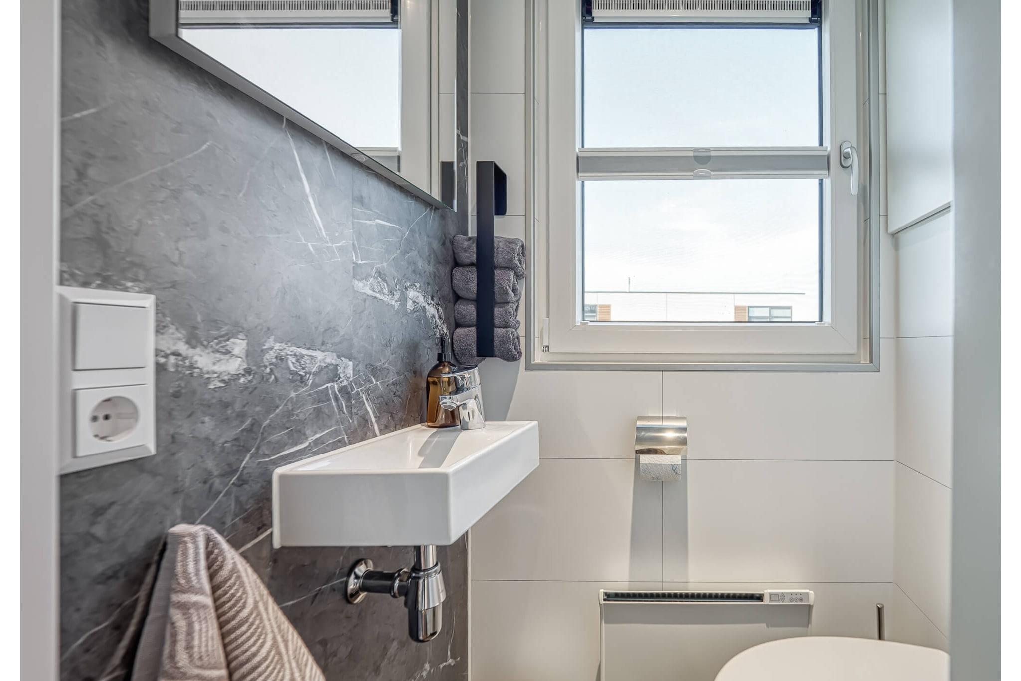 En välkomnande tillflyktsort på bottenvåningen bara 12 km från den baltiska kusten, denna eleganta lägenhet är skräddarsydd för par eller små familjer. Köket med keramikhäll är fullt utrustat för enkel matlagning, med kaffebryggare, mikrovågsugn och diskmaskin för modern bekvämlighet. Det mysiga vardagsrummet/matsalen inbjuder till avslappnad lounge med satellit-TV, en varm gasspis och en elegant matplats. Två dubbelrum (160 × 200 cm) erbjuder vilsamma tillflyktsorter, tillsammans med ett modernt badrum med dusch, hårtork och centralvärme. En separat toalett ger extra komfort, medan luftkonditioneringen håller saker svala under sommarvistelser. Gå ut för att njuta av två terrasser - de perfekta platserna att sola, äta utomhus eller koppla av på solstolarna. Beläget ett stenkast från båtliv och simning (5 m!), och bara några minuter från restauranger (200 m) och affärer (500 m), förenar denna fastighet lugn med bekvämlighet. Det medföljande tvättpaketet, takterrassen och den lekfulla trädgårdskänslan avslutar en välutrustad vistelse för mysiga semesterstunder.