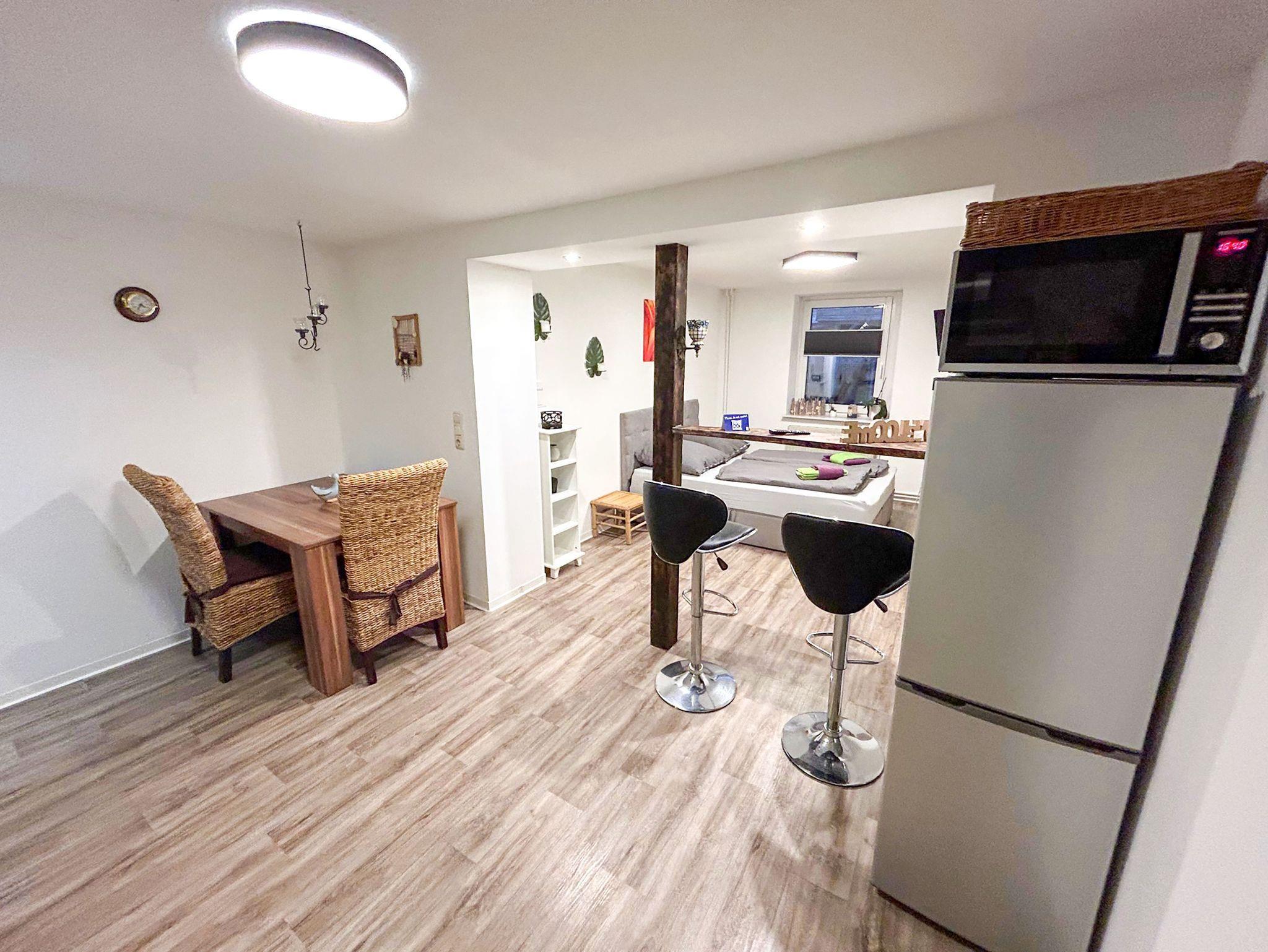 Die Ferienwohnung am Golfplatz ist ideal für Paare oder Alleinreisende und bietet auf 30 m² alles, was du für einen entspannten Aufenthalt brauchst. Sie liegt im Erdgeschoss und hat einen eigenen Eingang ? so kannst du deinen Urlaub in Ruhe genießen. Im kombinierten Wohn- und Schlafbereich sorgt ein bequemes Doppelbett (140x200) für erholsame Nächte - hier kannst du den Tag entspannt vor dem TV ausklingen lassen. Optisch wird der Schlafbereich von einem Balken mit Hochtisch und zwei Barstühlen von der Küche getrennt, was eine lockere Atmosphäre schafft. Die offene Küche mit Esstisch ist bestens ausgestattet: Backofen, Herd, Spülmaschine, Kühlschrank mit Gefrierfach, Mikrowelle, Kaffeemaschine, Wasserkocher und sogar ein Radio sorgen dafür, dass es dir beim Kochen an nichts fehlt. Das Tageslichtbad punktet mit einer Badewanne, die zum Entspannen nach einem erlebnisreichen Tag einlädt. Im Flur findest du eine Garderobe und einen Kleiderschrank ? hier kannst du deine Sachen ordentlich verstauen. Für gemütliche Stunden im Freien, wartet im Garten eine Sitzecke auf dich. Hier steht dir auch ein Grill für gemeinsame BBQ-Abende zur Verfügung.
