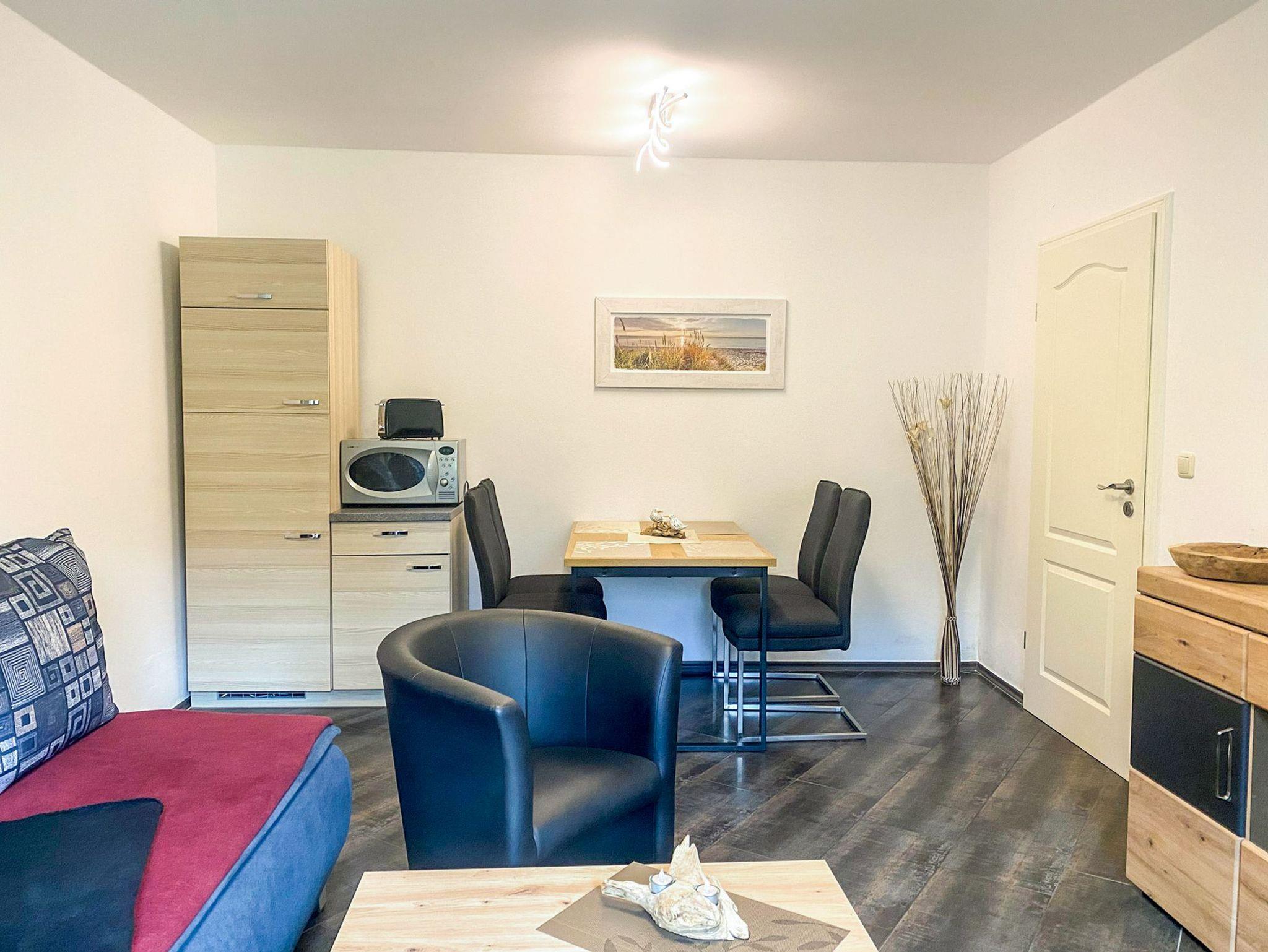 Die 50 m² große Ferienwohnung im Landhaus Kreitlow liegt im Ribnitzer Ortsteil Borg und bietet Platz für bis zu 5 Personen. Sie ist ideal für kleine Familien oder Paare mit Kindern und auch Hunde sind bei uns herzlich willkommen. Im Wohnzimmer lädt ein gemütliches Schlafsofa (160x200) zum Entspannen ein. Hier findest du auch einen Fernseher und einen Esstisch, an dem ihr gemeinsam essen oder spielen könnt. Die separate Küche ist praktisch ausgestattet mit Herd, Backofen, Spülmaschine und Kaffeemaschine - perfekt, um sich auch im Urlaub schnell und unkompliziert selbst zu versorgen. Das separate Schlafzimmer bietet ein Doppelbett (180x200) sowie ein Etagenbett (90x200) und ist damit ideal für Familien mit Kindern. Ein Kleiderschrank sorgt für ausreichend Stauraum. Das Badezimmer verfügt über eine ebenerdige Dusche sowie ein WC. Zur Wohnung gehört außerdem eine eigene Terrasse mit Blick in den Garten. Hier kannst du morgens in Ruhe Kaffee trinken, abends grillen oder einfach die frische Landluft genießen. Im Garten gibt es viel Platz zum Spielen, Entspannen oder Tiere beobachten - denn auf dem Grundstück leben Ponys und Katzen. Die Wohnung liegt auf einem ehemaligen Bauernhof, ruhig und grün und doch nur wenige Minuten von den Stränden der Ostsee entfernt.