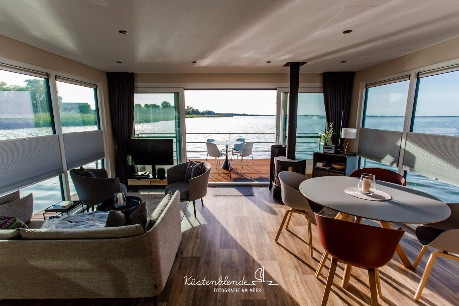 Aus dem Wohn- und Essbereich gelangen Sie auf die Terrasse. Hier können Sie Ihre Mahlzeiten genießen. Auf der Dachterrasse kann man sehr gut entspannen und die Seele baumeln lassen. Erleben Sie das Gefühl von Freiheit auf dem Wasser!