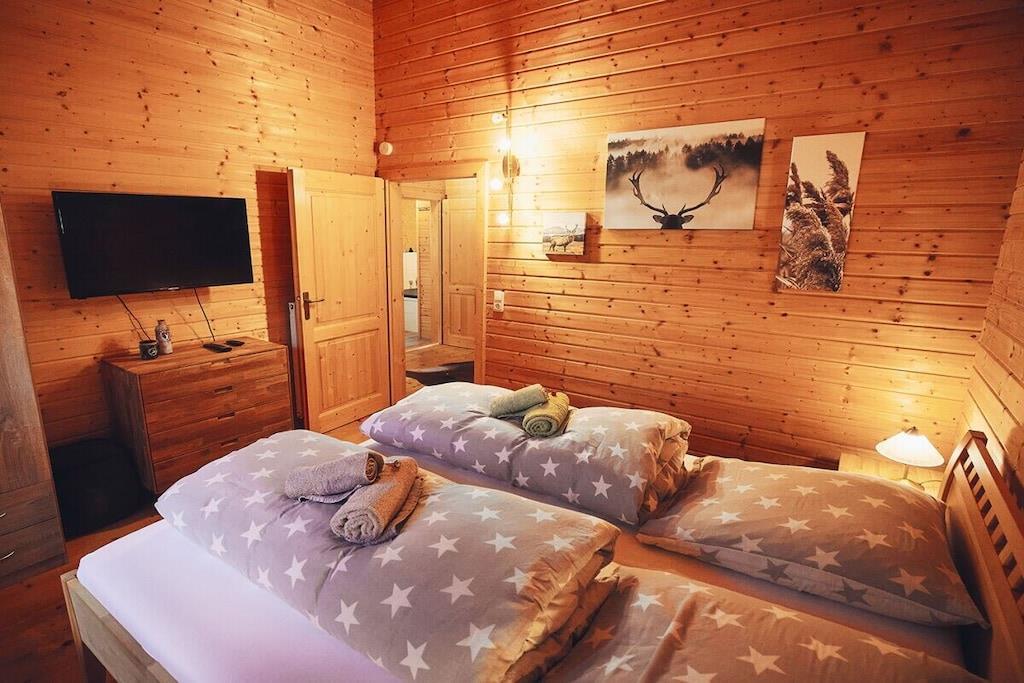 Semesterhus "Waldsee Glück" – Skifferterrass 3 - Inhägnad utomhusterrass - 75 kvm Boyta - Inga hundar/husdjur - Internet/Wi-Fi - Bastuhytt på terrassen - - 2 sovrum med dubbelsäng (180x200), garderob - 1 badrum med dusch (bottenvåning), badkar, handfat och toalett - 1 separat toalett med handfat - 1 filterkaffemaskin (pulver) + 1 Senseo-kapselmaskin - Öppen planlösning i vardagsrum/matsal med modernt kök, soffa och platt-TV - Gasgrill (terrass) Obs: - En grundläggande uppsättning hushålls-/hygienartiklar (ej mat) tillhandahålls på ankomstdagen - Bastuhytt på terrassen Inhägnad utomhusterrass - 2 parkeringsplatser - Cykelparkering Max. 4 personer inklusive barn/spädbarn - Inga hundar/husdjur