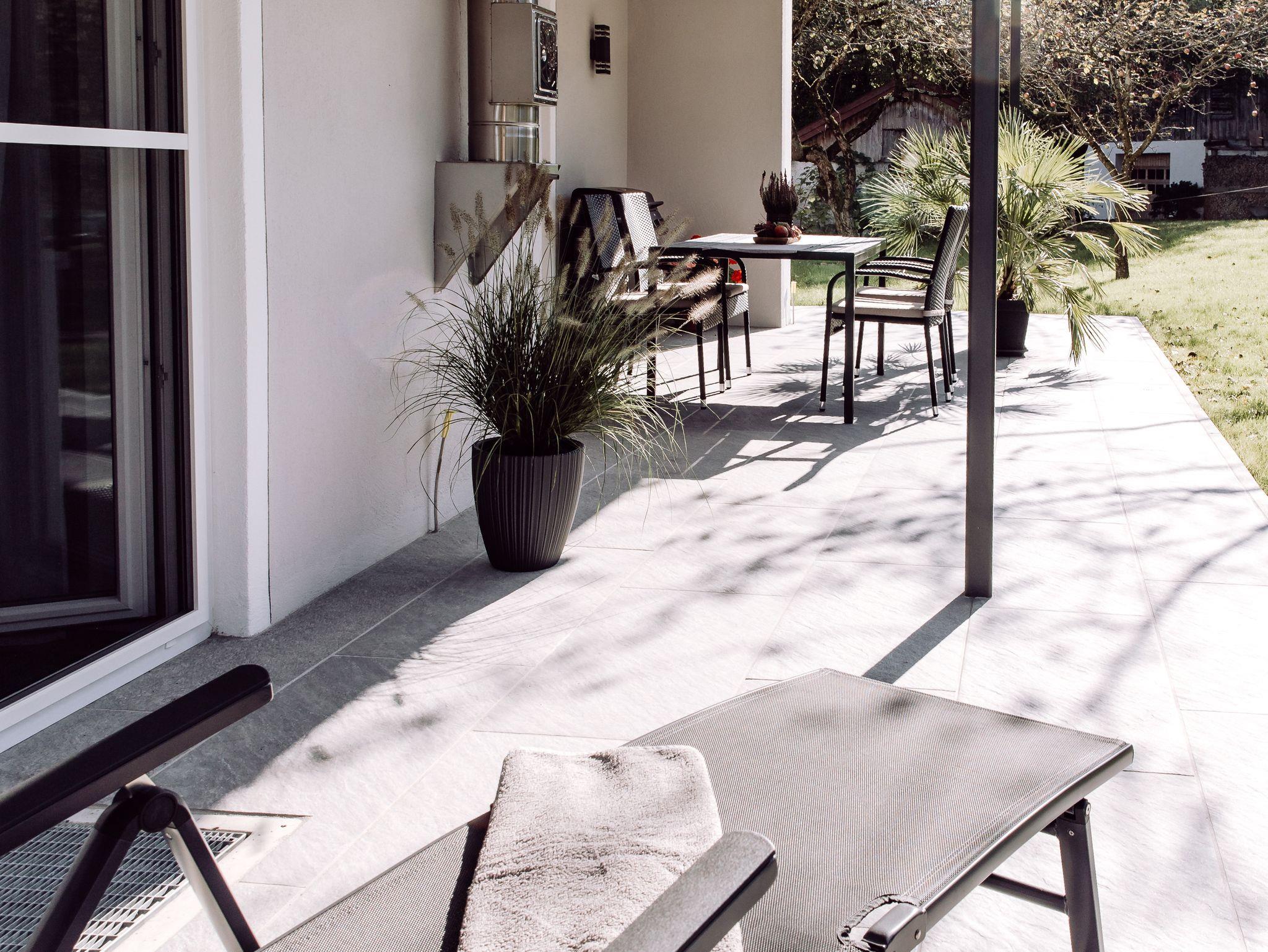 Besonderes Highlight ist der große Südbalkon mit 21qm2, ausgestattet mit Tisch, Stühlen und Liegen.
