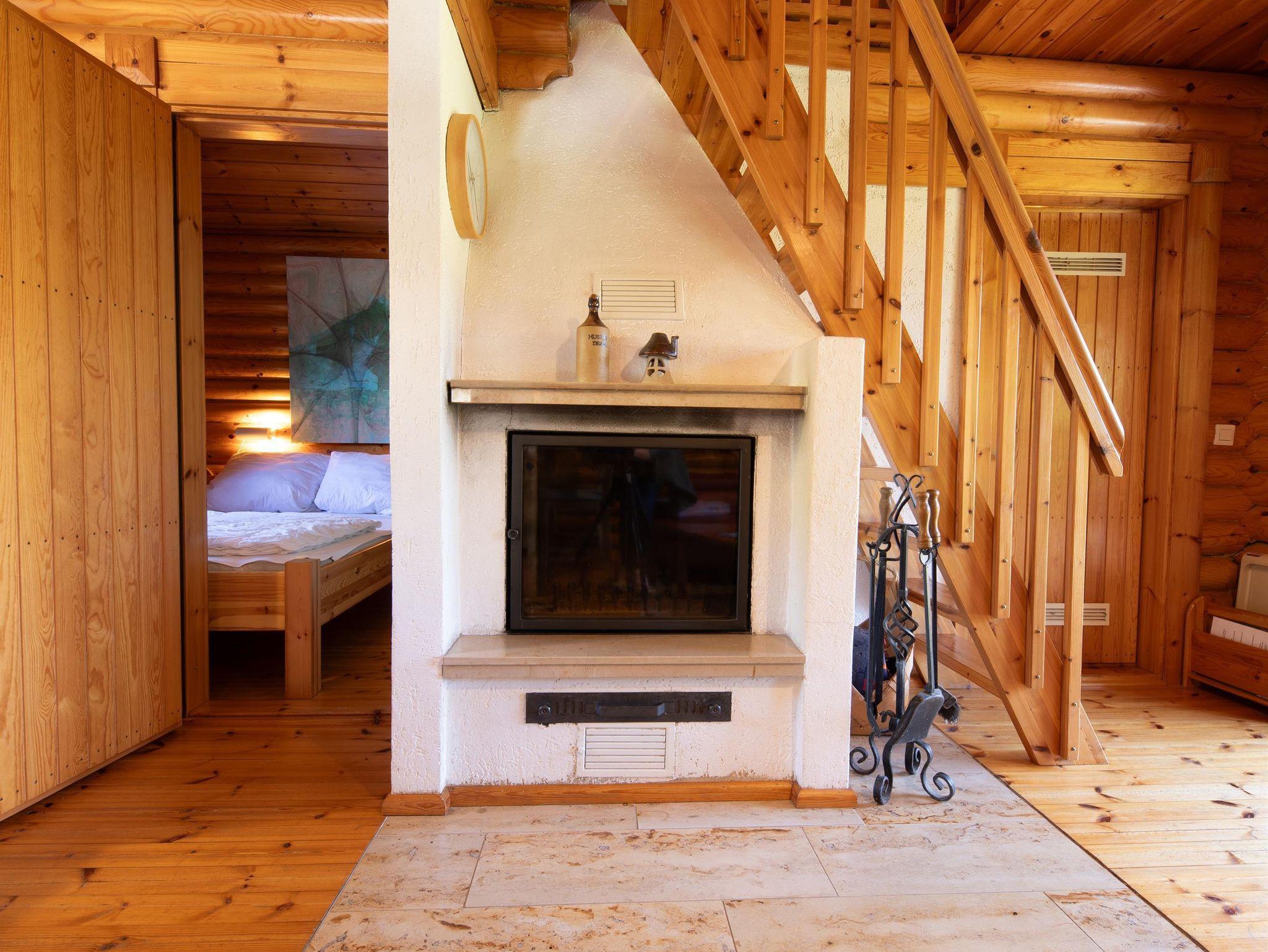 Ca. 50 m² auf zwei Etagen. Im Erdgeschoss befindet sich eine Wohnküche mit Rundsitzecke, Kamin und TV. Die Küchenzeile mit Esstresen ist komplett ausgestattet mit Backofen, Mikrowelle, Kühlschrank mit Gefrierfach, Spülmaschine, Toaster, Wasserkocher Kaffee- und Nescafé Dolce Gusto Kaffeekapselmaschine. Im Erdgeschoss gibt es ein kleines Schlafzimmer mit Doppelbett 140 x 200. Eine steile Holztreppe (mit verriegelbarem Schutzgitter oben) führt in das offene Obergeschoss mit zwei Einzelbetten 90 x 200 und Loggia.