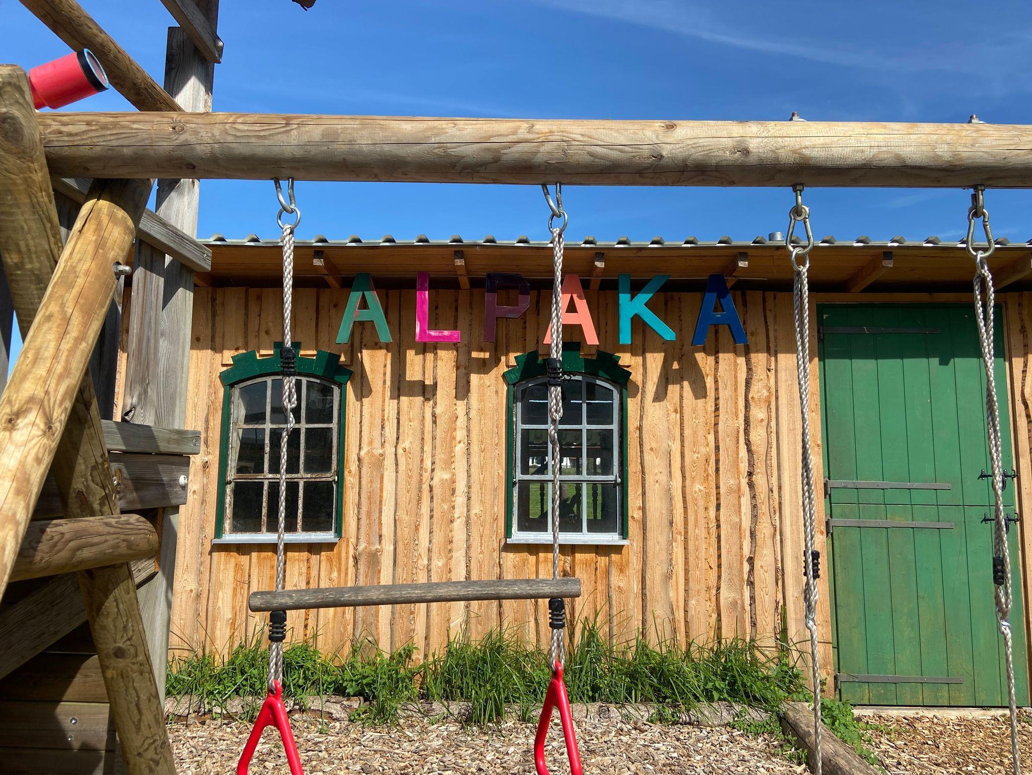 Nebenan, auf der großen Weide, befinden sich die Tiergehege, ein kleines Fußballfeld, ein Lagerfeuerplatz und ein Sandspielbereich.