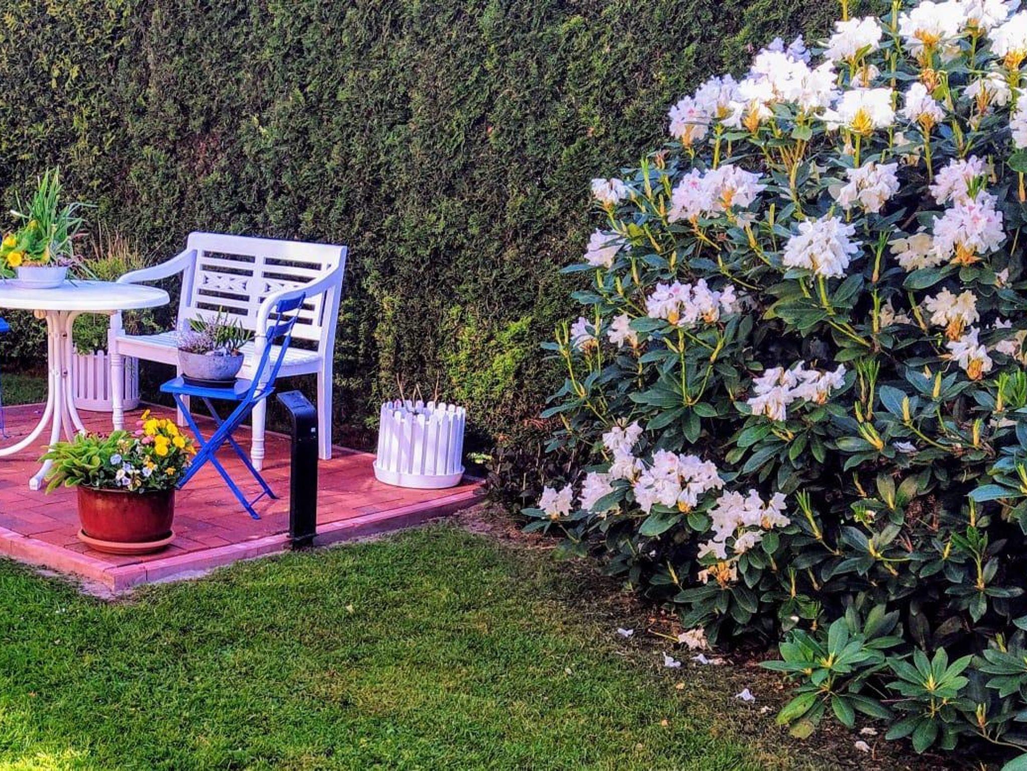 Kommen Sie zu uns und genießen Sie die ruhige Lage sowie viele Annehmlichkeiten in und um unsere Ferienwohnung. Zum Außenbereich gehören eine zum Westen ausgerichtete Terrasse mit Gartenmöbeln und Strandkorb. Eine Markise schützt Sie hier vor der Sonne. Außerdem stellen wir Ihnen zum Grillen einen Gasgrill zur Verfügung. Für ein Frühstück im Freien, können Sie die Veranda unseres Gartenhäuschens nutzen. In diesem befindet sich auch eine kleine Küche, so dass sie das Geschirr getrost in der Ferienwohnung lassen können. Die Schlafzimmer können mit Außenjalousien verdunkelt werden. Ein PKW-Einstellplatz befindet sich direkt am Haus. Und Ihre mitgebrachten Fahrräder können in einem separaten Abstellraum sicher verwahrt werden.