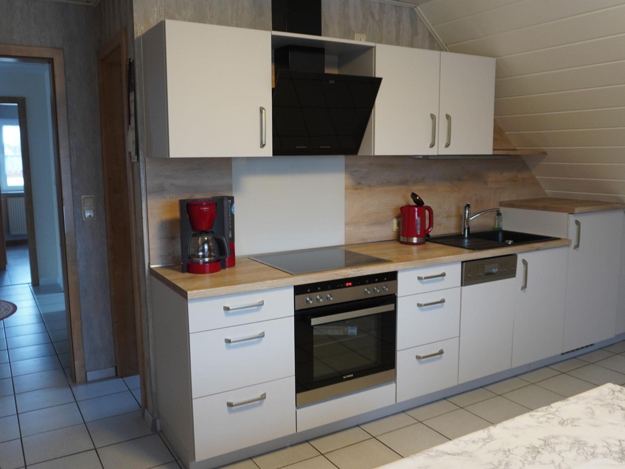 • eine Küche (Küchenzeile und Essecke)