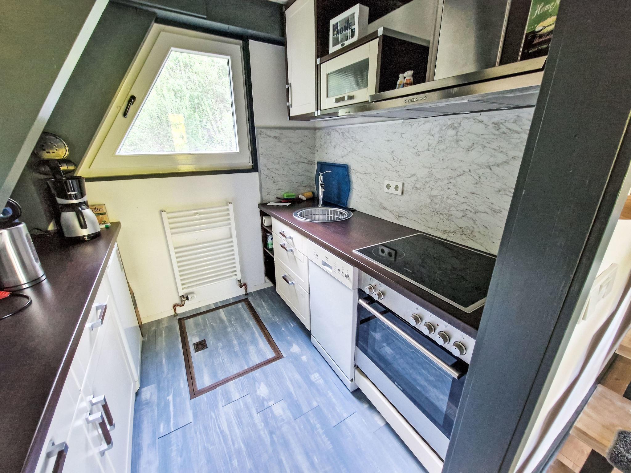 "Winnetou", 3-room house 68 m2 on 2 levels. Object suitable for 4 adults + 2 children. Practical furnishings: living/dining room with dining table and satellite TV. Exit to the terrace. Open kitchen (4 hot plates, oven, electric coffee machine). Shower/WC. Top floor: 1 double bedroom with sloping ceilings. With sloping ceilings, 1 room with 2 beds and 2 sleeping facilities. Gas heating. Terrace partly roofed, lawn 300 m2. Terrace furniture, box-room. Facilities: children's high chair, baby cot (extra). Please note: maximum 1 pet/ dog allowed. Smoke alarm, fire extinguisher. The property is one of a type of property or apartment. Please note: From the double room, an open, slanting bunk under the roof (height not suitable for adults), with a matrass (1,40 m large) for children, is accessed by a vertical ladder. There can be a room with 2 beds instead of a double room.