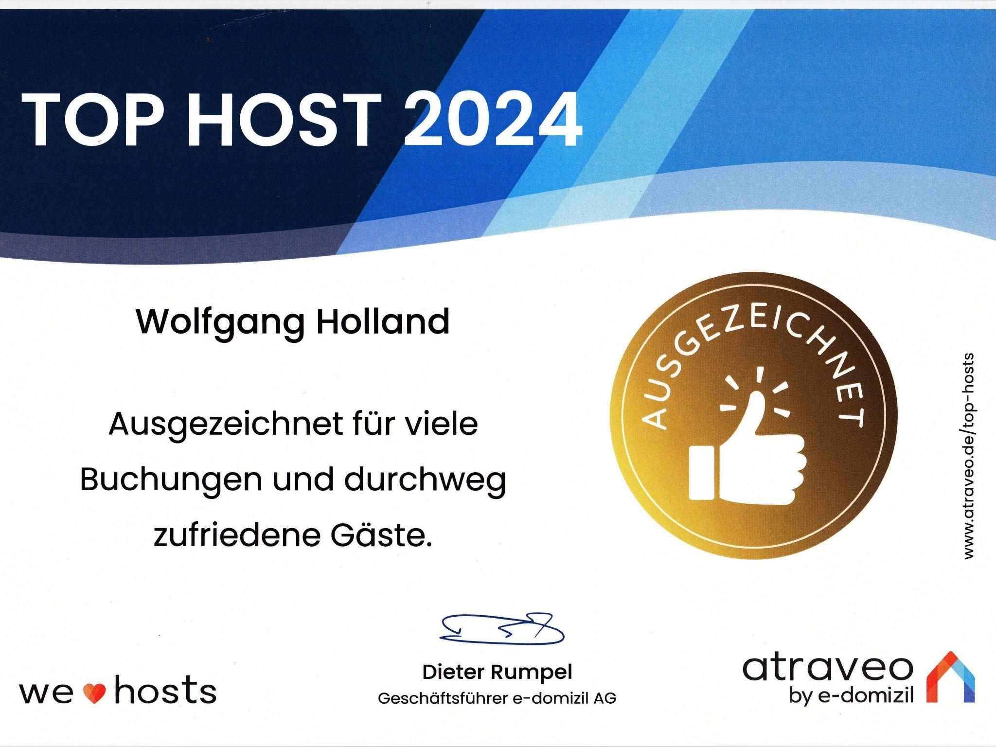 The bright holiday flat with a living space of 38m² offers space for up to three people and is located on the first floor. The bedroom is 14.5m² in size and has a double bed measuring 180x200cm, wardrobe, balcony door, seating area, make-up facilities and laminate flooring. The kitchenette in the eat-in kitchen is equipped with a fridge and freezer compartment, microwave, sink, two ceramic hobs and all crockery and cooking utensils as well as a coffee machine, egg boiler, toaster and kettle. The kitchen/living room is 14.1 m² and has a PVC floor, a sofa bed, various cupboards and a dining area,
