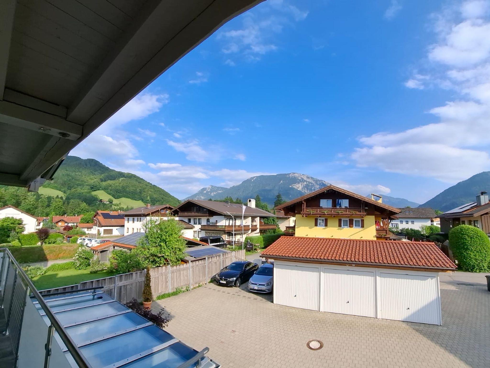 Das helle Wohnzimmer mit Zugang zum sonnigen Südwestbalkon lädt dazu ein, die Seele baumeln zu lassen – mit Blick auf den Rauschberg und die Berge im Abendlicht. In der modernen Einbauküche mit Essbereich kochen Sie gemeinsam Lieblingsgerichte oder starten entspannt in den Tag mit einer frischen Tasse Kaffee.