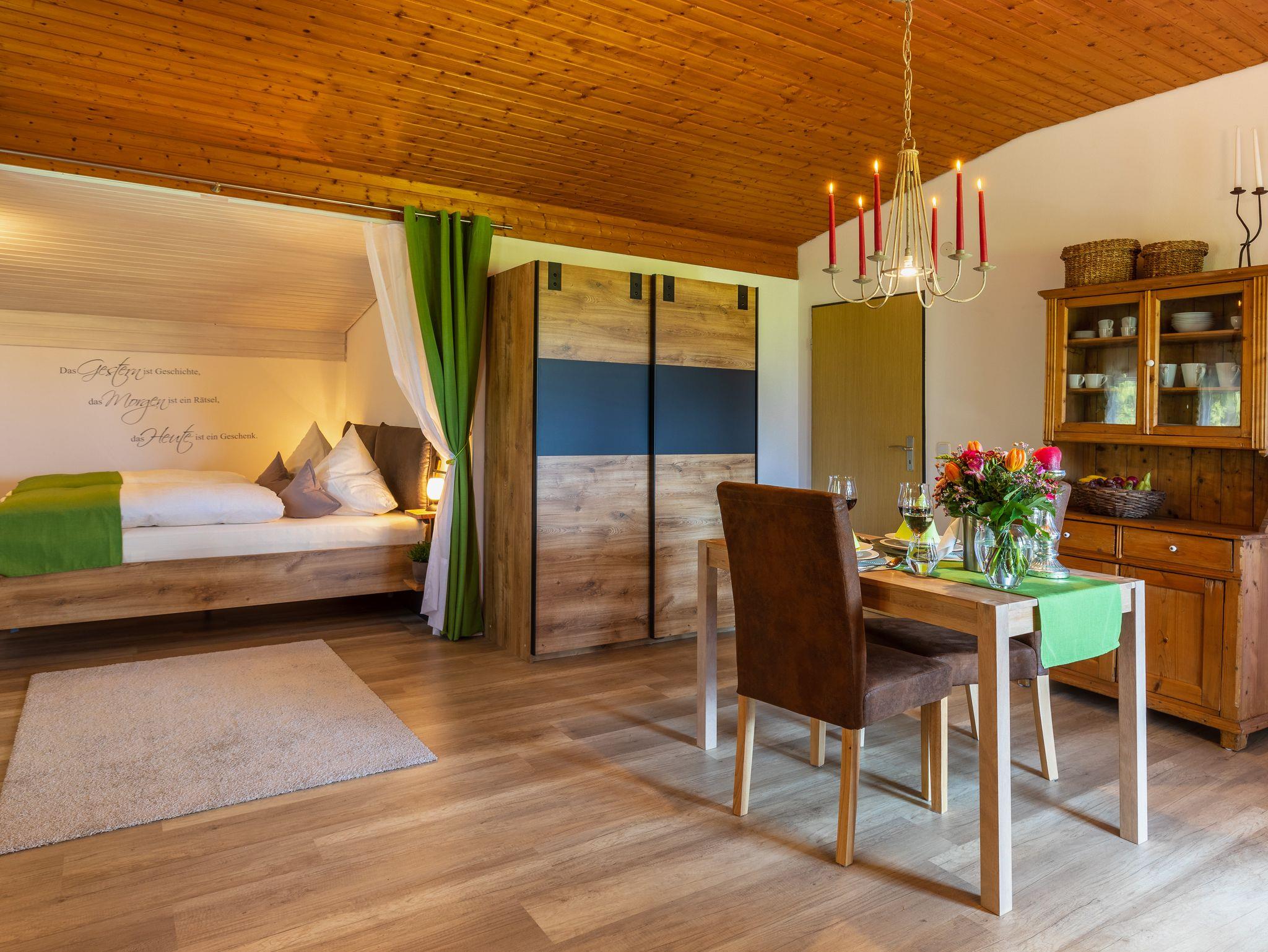 Wohn-/Schlafraum mit gemütlicher Sitzgruppe und separatem Esstisch.