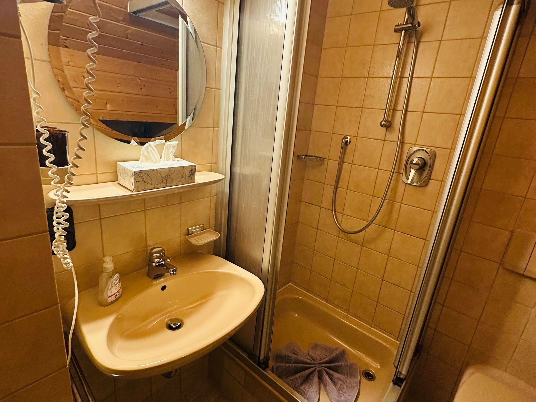 Das Badezimmer mit Dusche, WC und Waschbecken rundet das Angebot ab und sorgt für zusätzlichen Komfort.
